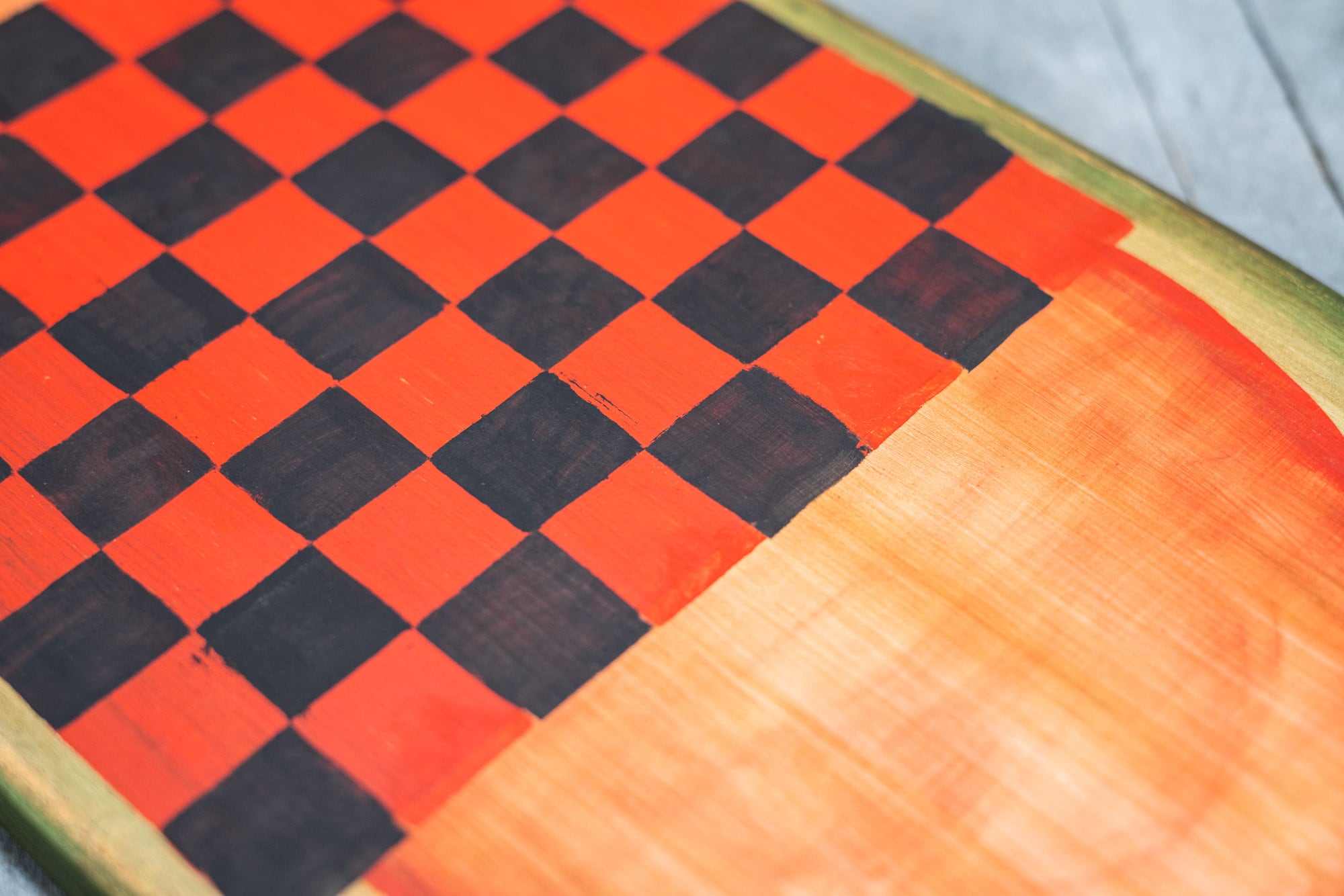 This is a vintage hand painted wooden checkers board. It looks like a watermelon theme board and we picked up these at an antique store that went out of business. We just thought they were such cool display pieces even if you never use them to play checkers. The boards are approx. 20 1/2 x 9 1/4 x 3/4 inches. We picked up 4 of these and they all have some wear and could use a good cleaning but nothing too serious. As always the first buyer will receive the best quality one and so on. Please check out the photos for a closer look and if you have any questions please let us know.