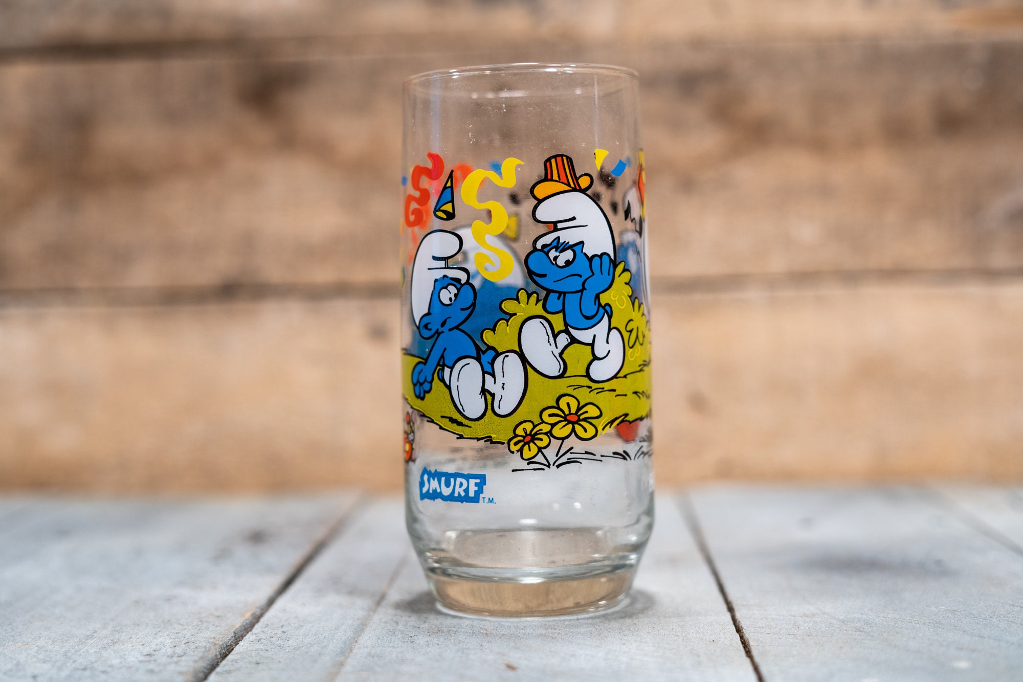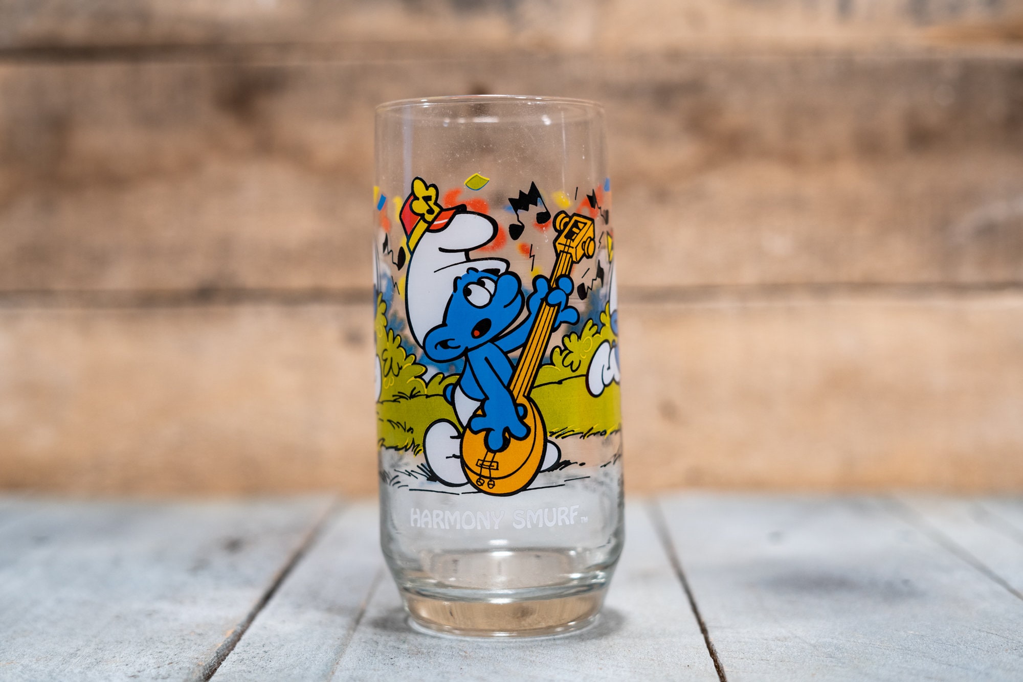 Take a look at this vintage Smurf's glass. This is from 1983 and features Harmony Smurf. It is in very nice shape no cracks or chips on the glass but it was used so there is slight wear. This would make a great gift for any Smurf's fan. It is from the Wallace Berrie & Company. We just recently picked up a ton of smurf glasses so make sure you check out the others. We picked 5 of these glasses so as usual first buyer gets the better quality glass and so on. Please check out the photos for a closer look and if you have any questions please let me know. Thanks!