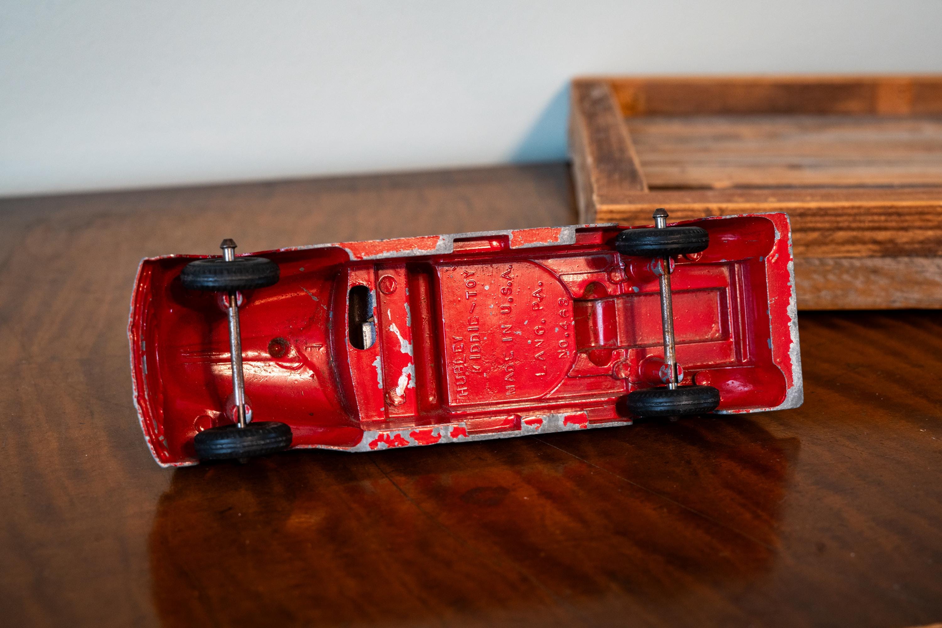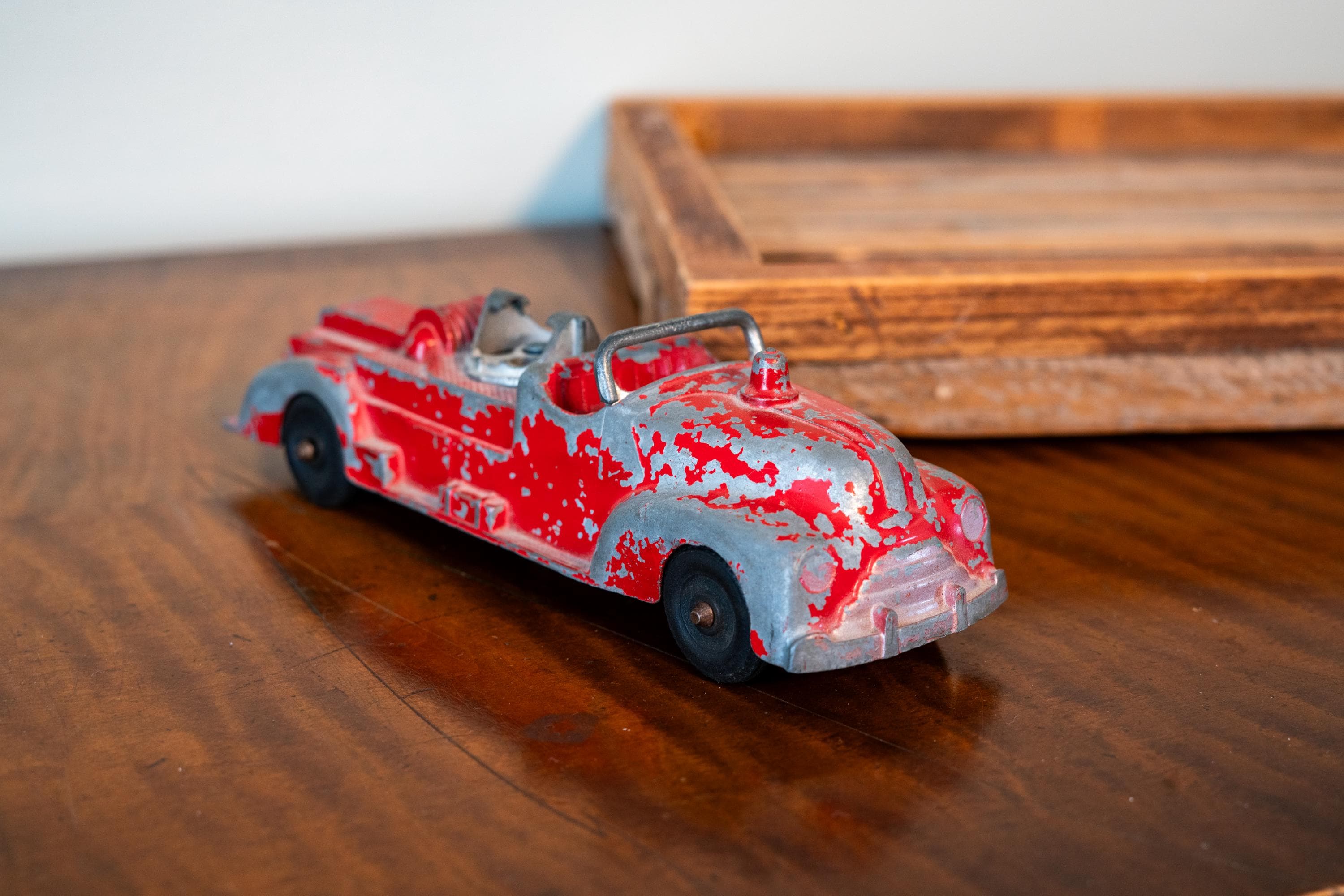 Check out this awesome toy from the 1940s. This is a die cast Hubley Fire Truck. It is approx. 7 1/4 x 2 x 2 inches. As you can see it does have some wear and paint loss but thats what adds to its awesome distressed look. It is missing the water nozzels that wouldve been on the back and this is a piece often missing from these. All in all an awesome display piece in a nursery or even a man cave. Please check out the photos for a closer look and if you have any questions please let me know. Thanks!