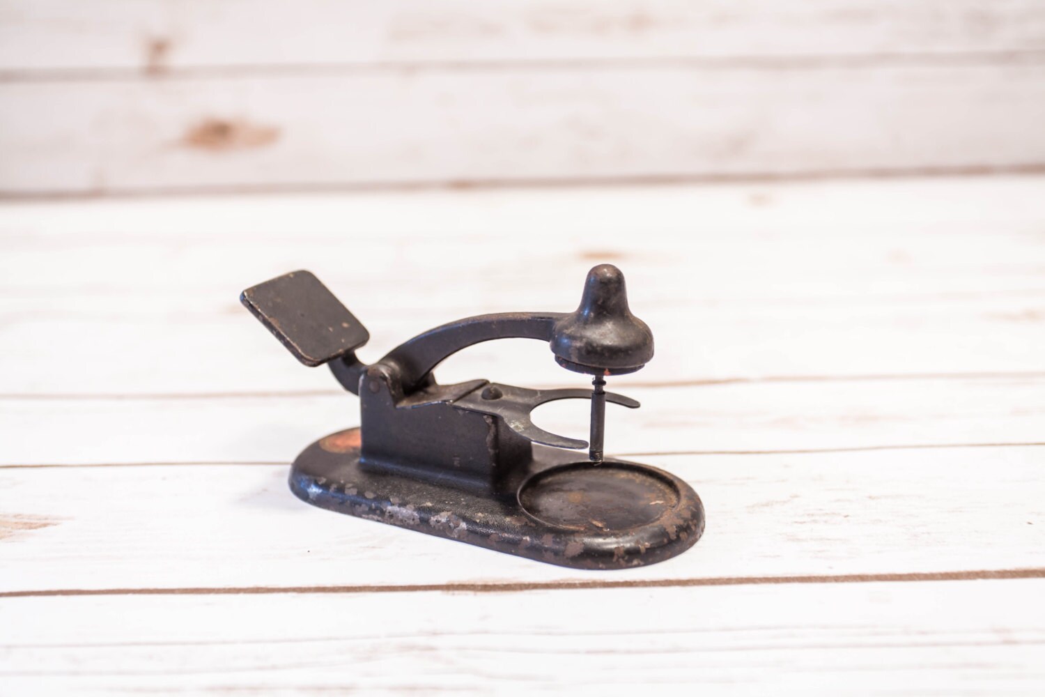 Take a look at this absolutely awesome piece we picked up the other day at a yard sale. It has such an awesome vintage look to it and would make a great display piece for any writer or to add to your desk. This is a Theo Alteneder & Sons cast iron draftsman inkstand. It is Patented Dec. 4, 1900, July 10, 1906. As you can see it does have some wear & rust but considering its over 100 years old its in really nice shape. The decal is not all there. The stand looks to be all intact and only thing missing would be the ink well that would be inserted in front but that was usually purchased separately. We measured this by having the tool lifted up as shown in picture 2 & 4. It is approx. 5 1/2 x 5 x 2 1/2 inches. This would make a great gift. Please check out the photos for a closer look and if you have any questions please let me know. Thanks!
