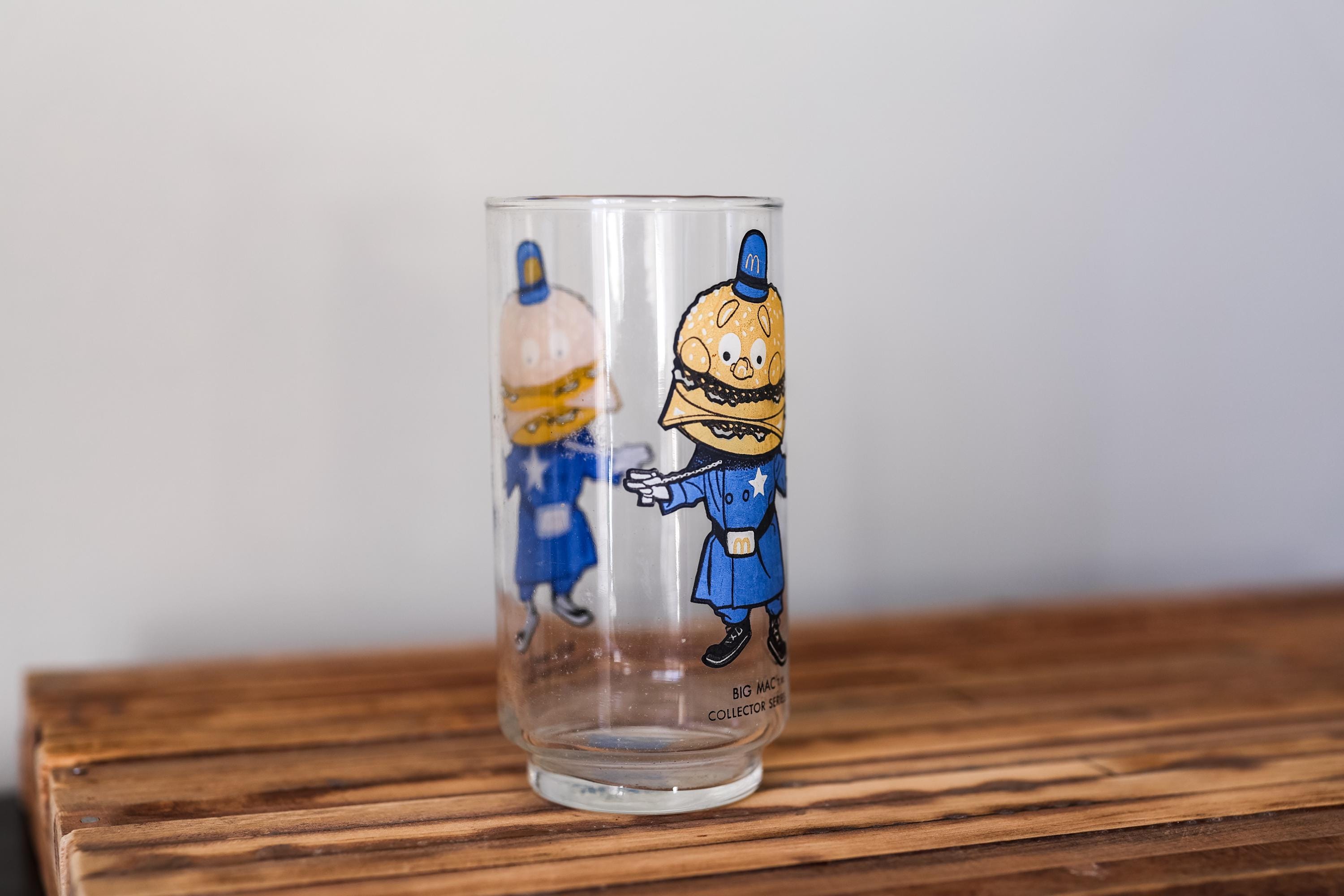 We love finding these vintage McDonalds collectible glasses. This one features Big Mac and it is from the 1970s and is from the Collector Series. It does have wear, could use a good cleaning, and the color is faded. It is approx. 5 1/2 x 2 3/4 inches. These make a great gift.