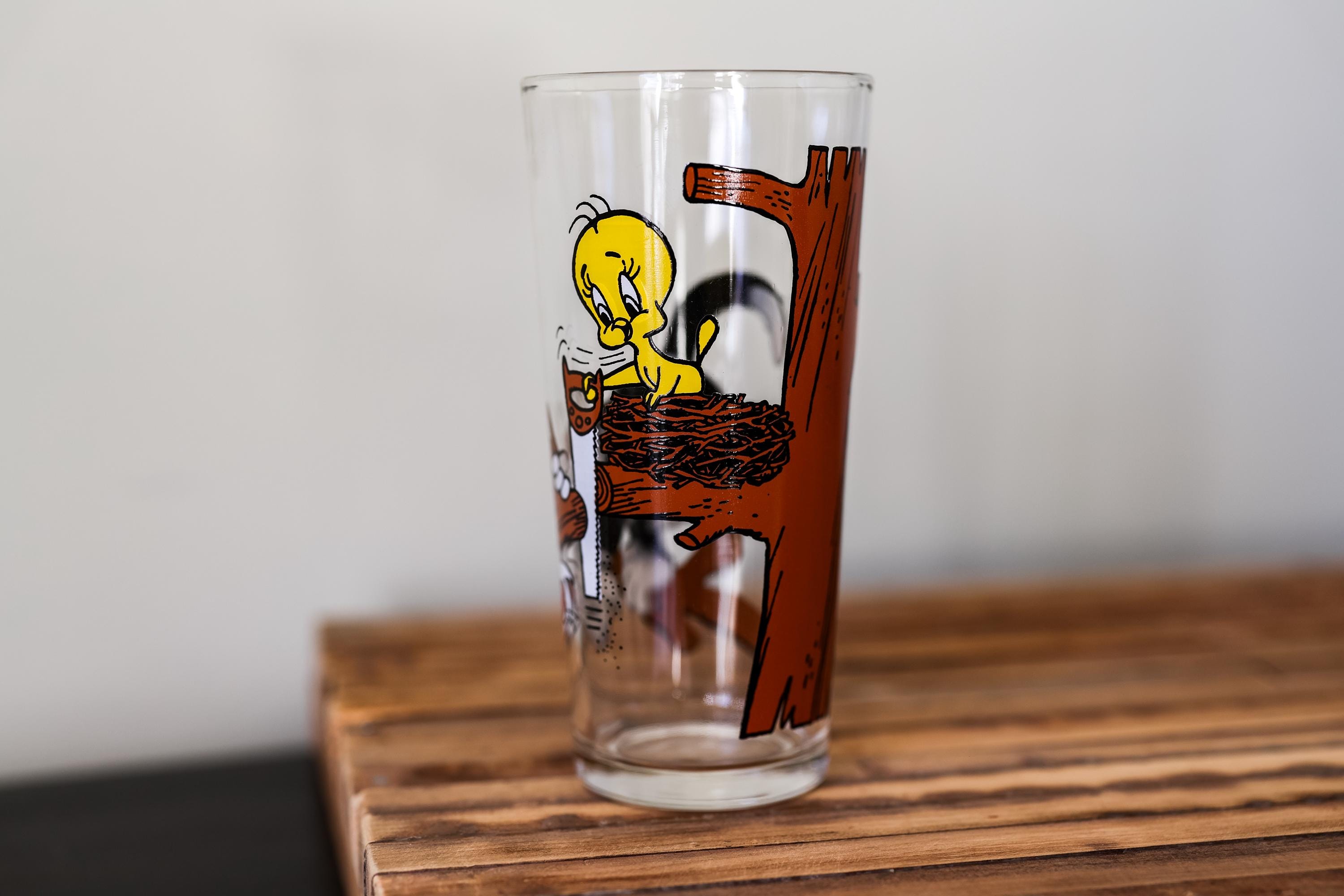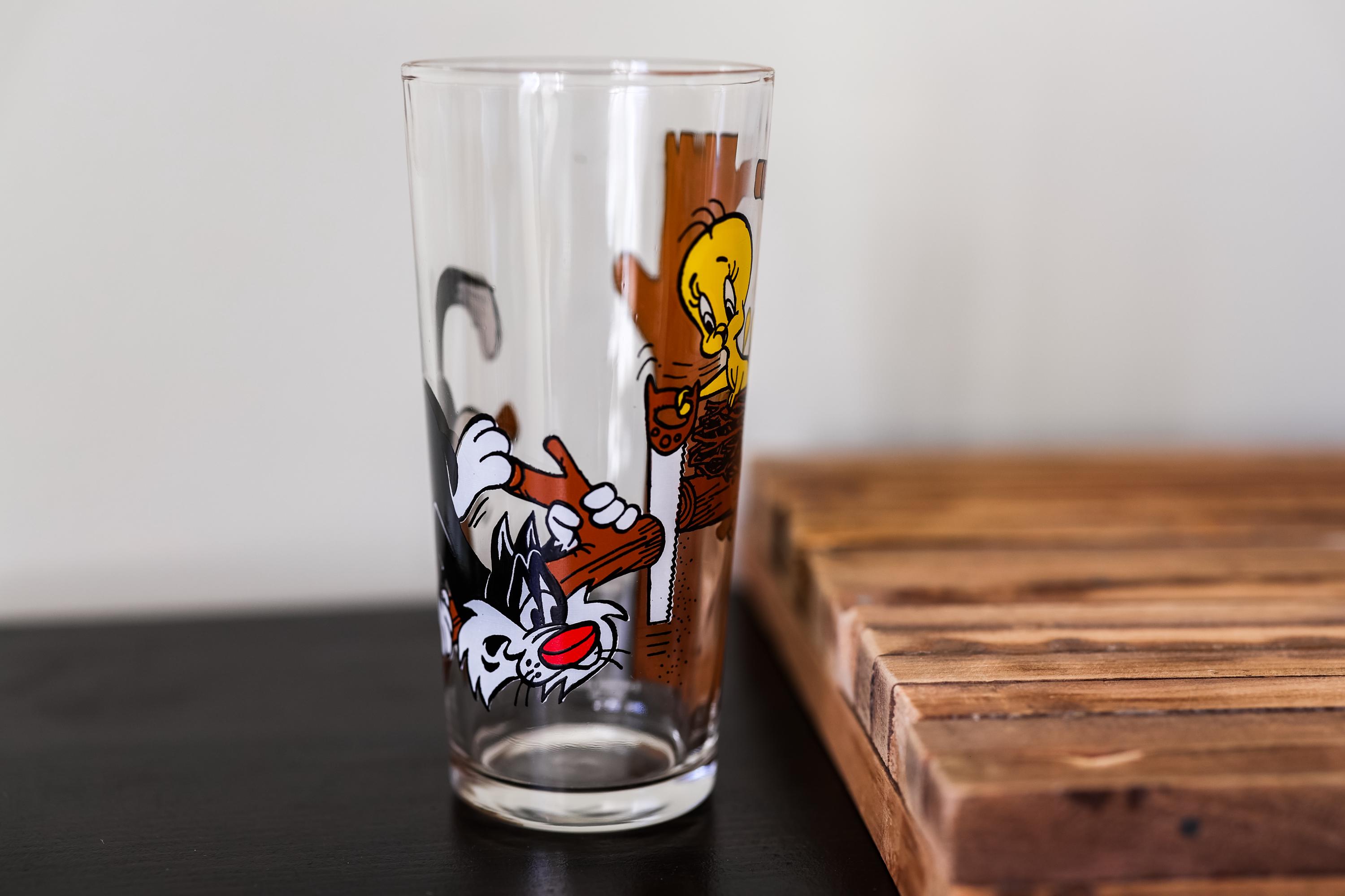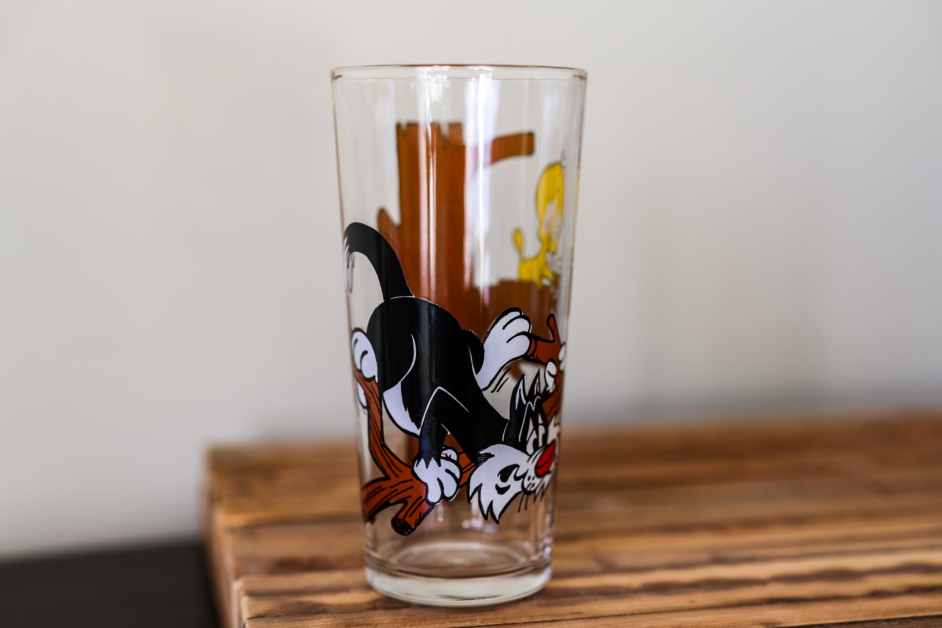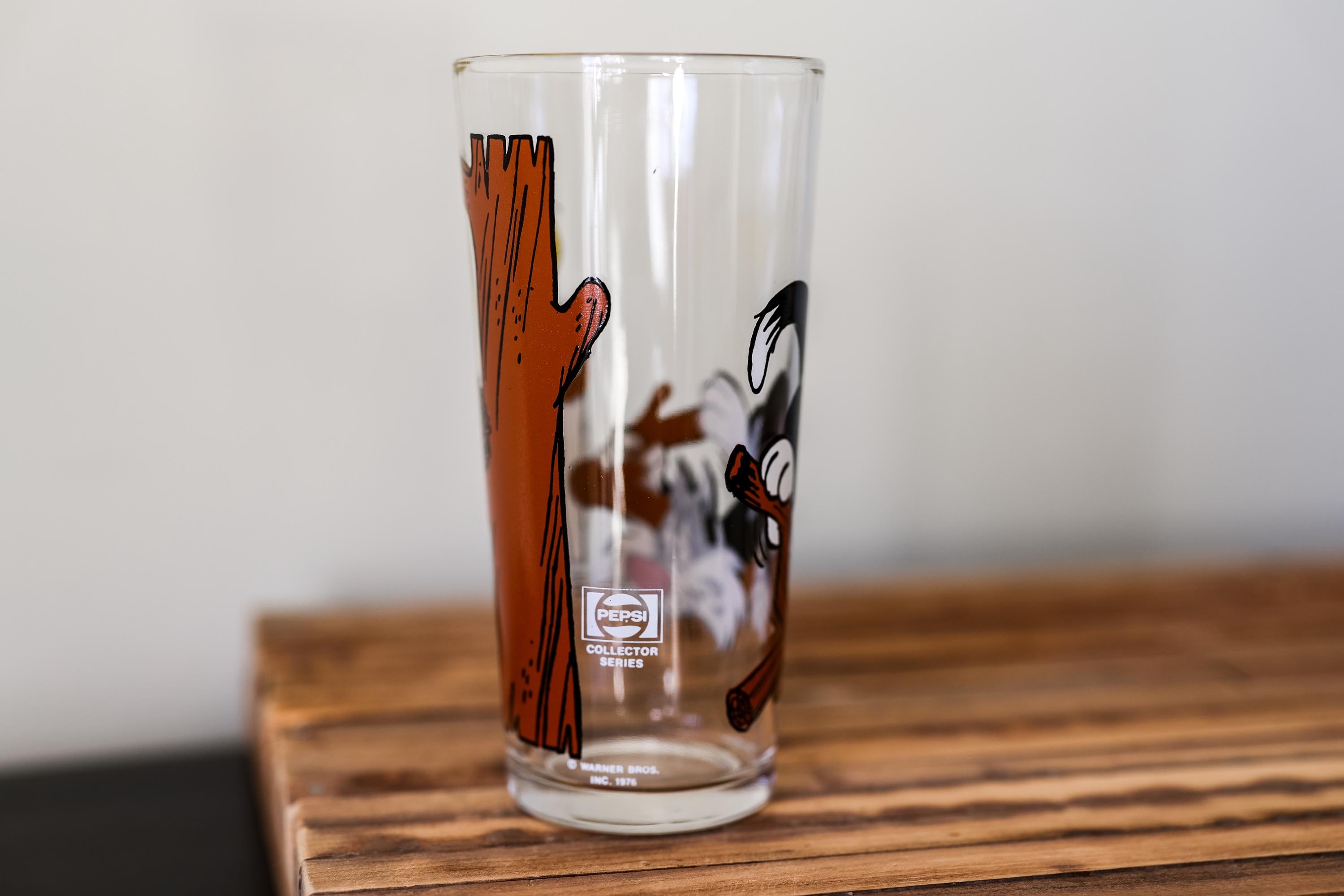 Check out this awesome collectable glass from 1976. It is a Pepsi Collector Series collectable glass. It features Sylvester and Tweety bird. This would make a great display piece or gift. The glass is in nice condition no cracks or chips but it does need a good cleaning. We came across a ton of collectable glasses recently so make sure you check them out.