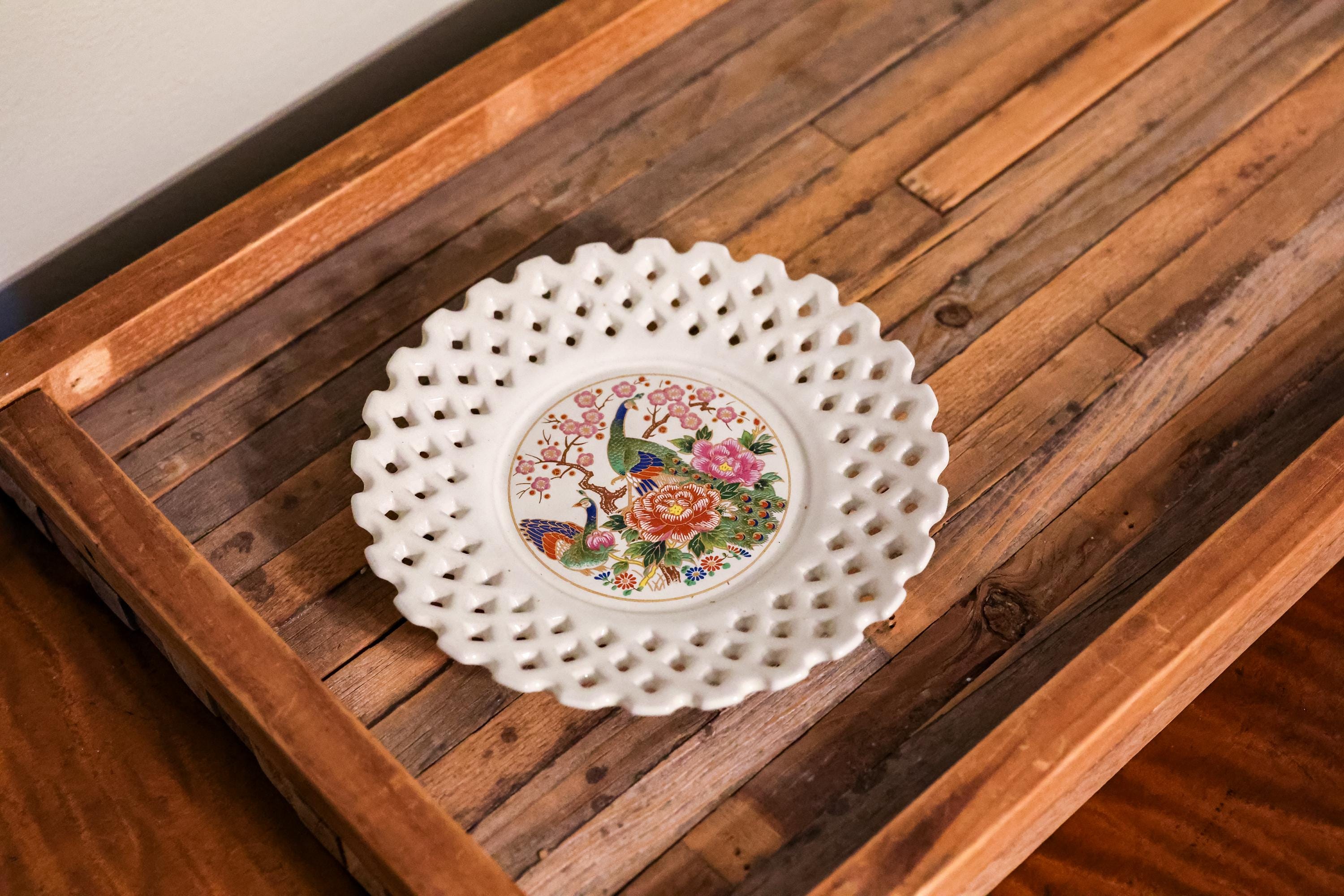 This is a Vintage Japanese Sato Gordon Porcelain Plate. It features a floral scene and peacocks. It is approx. 6 x 6 x 1 inches. There is some wear but no cracks or chips.