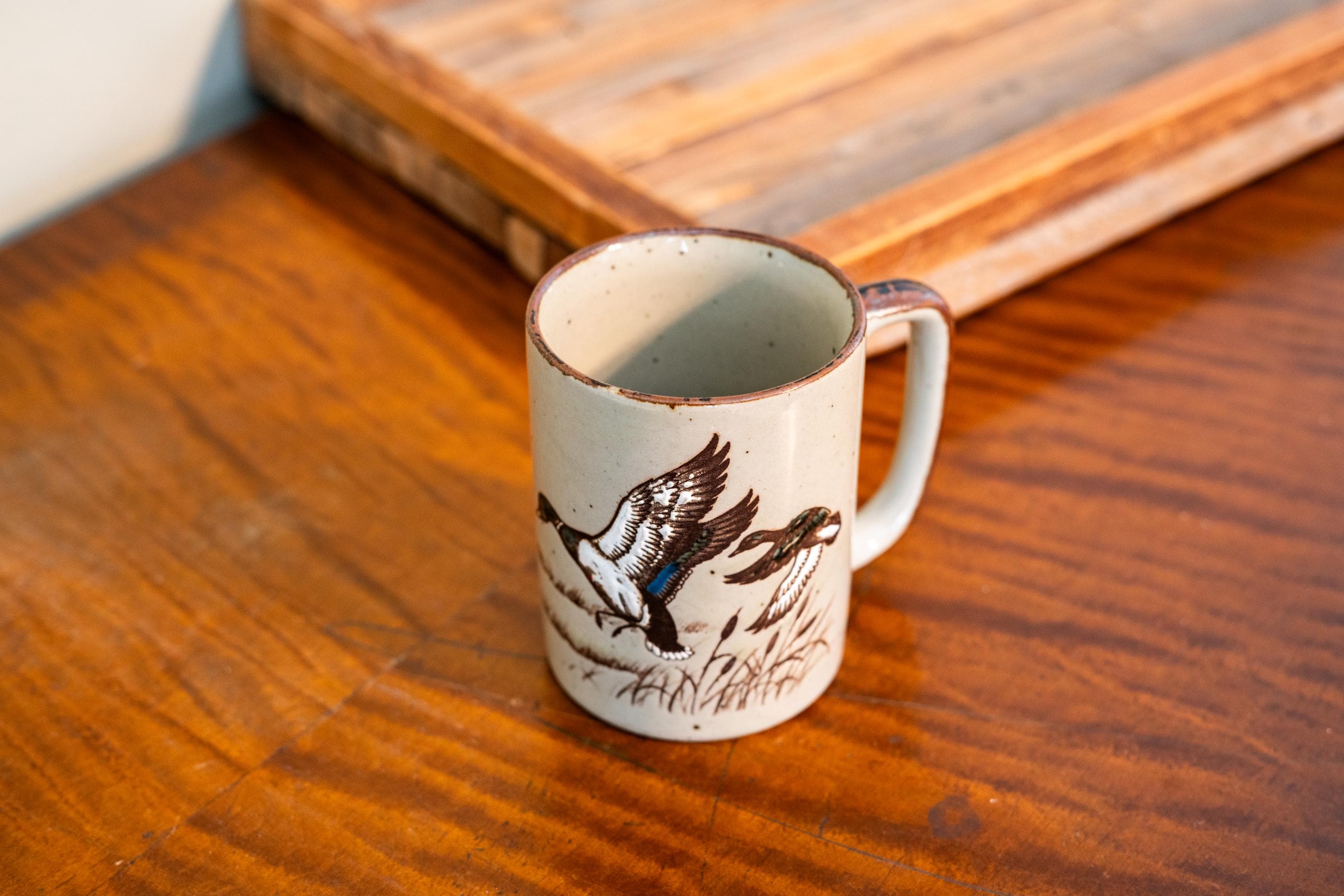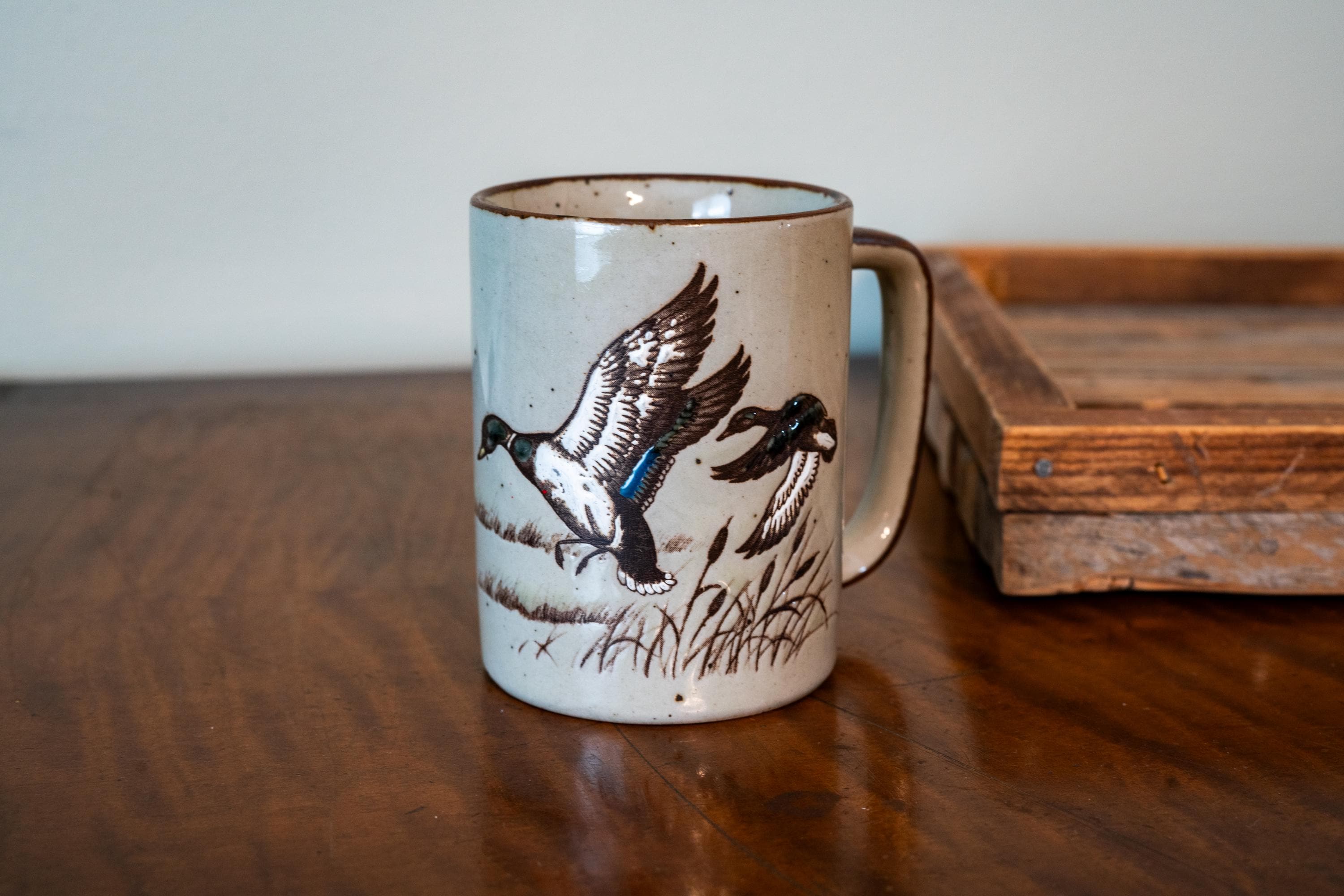How cool is this vintage mug. It is made by Otagiri and features Mallard Ducks. This would make a great gift for that duck lover or even for a hunting cabin. It is approx. 4 1/2 x 3 x 3 inches. The mug doesnt have any chips or cracks but can use a good cleaning.