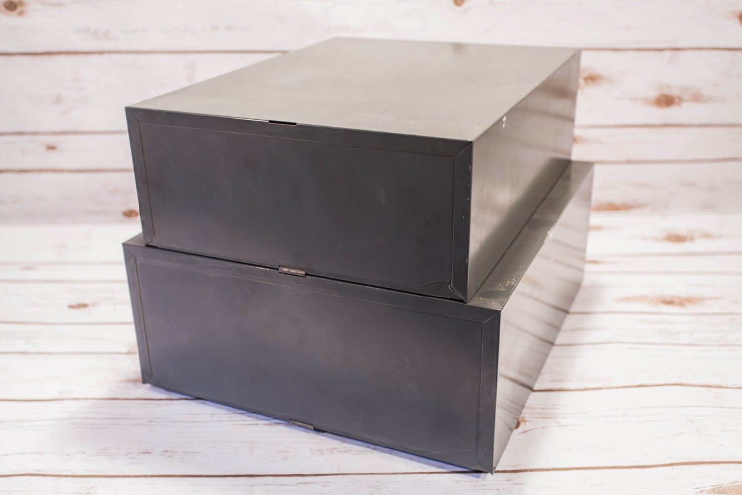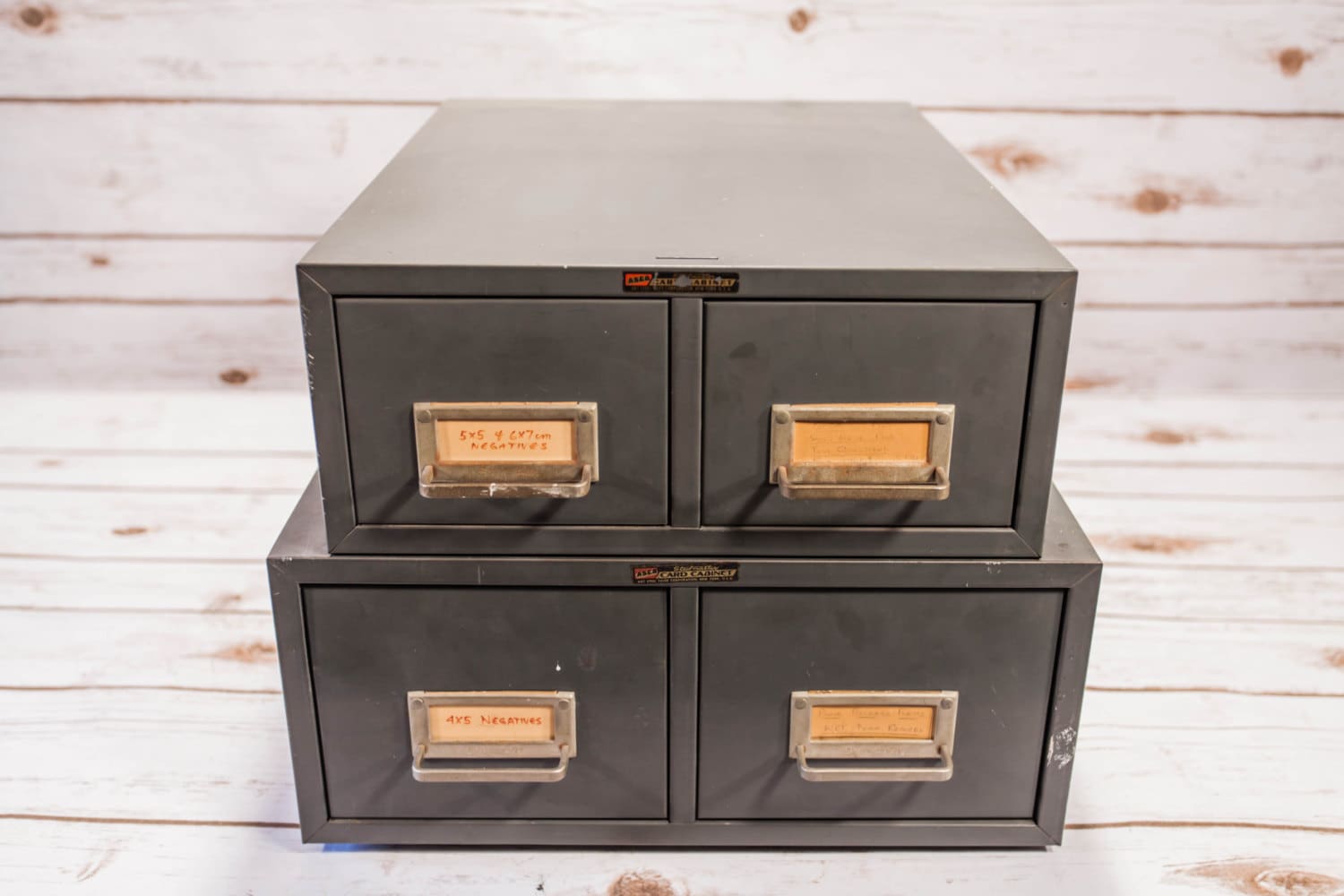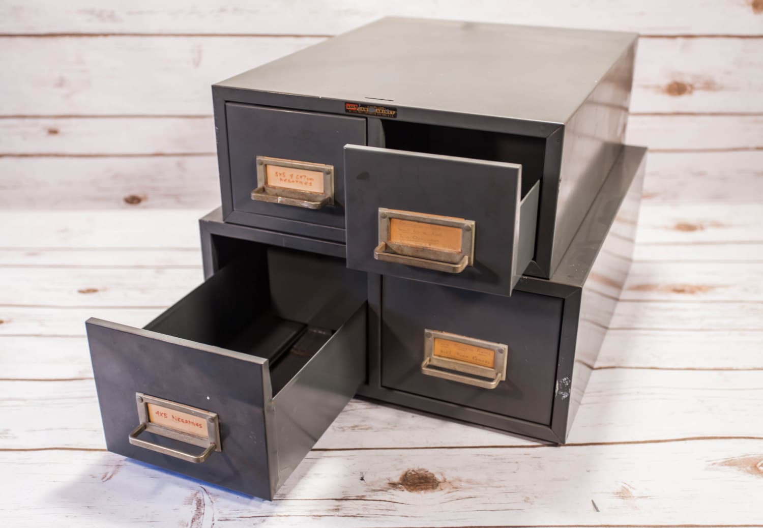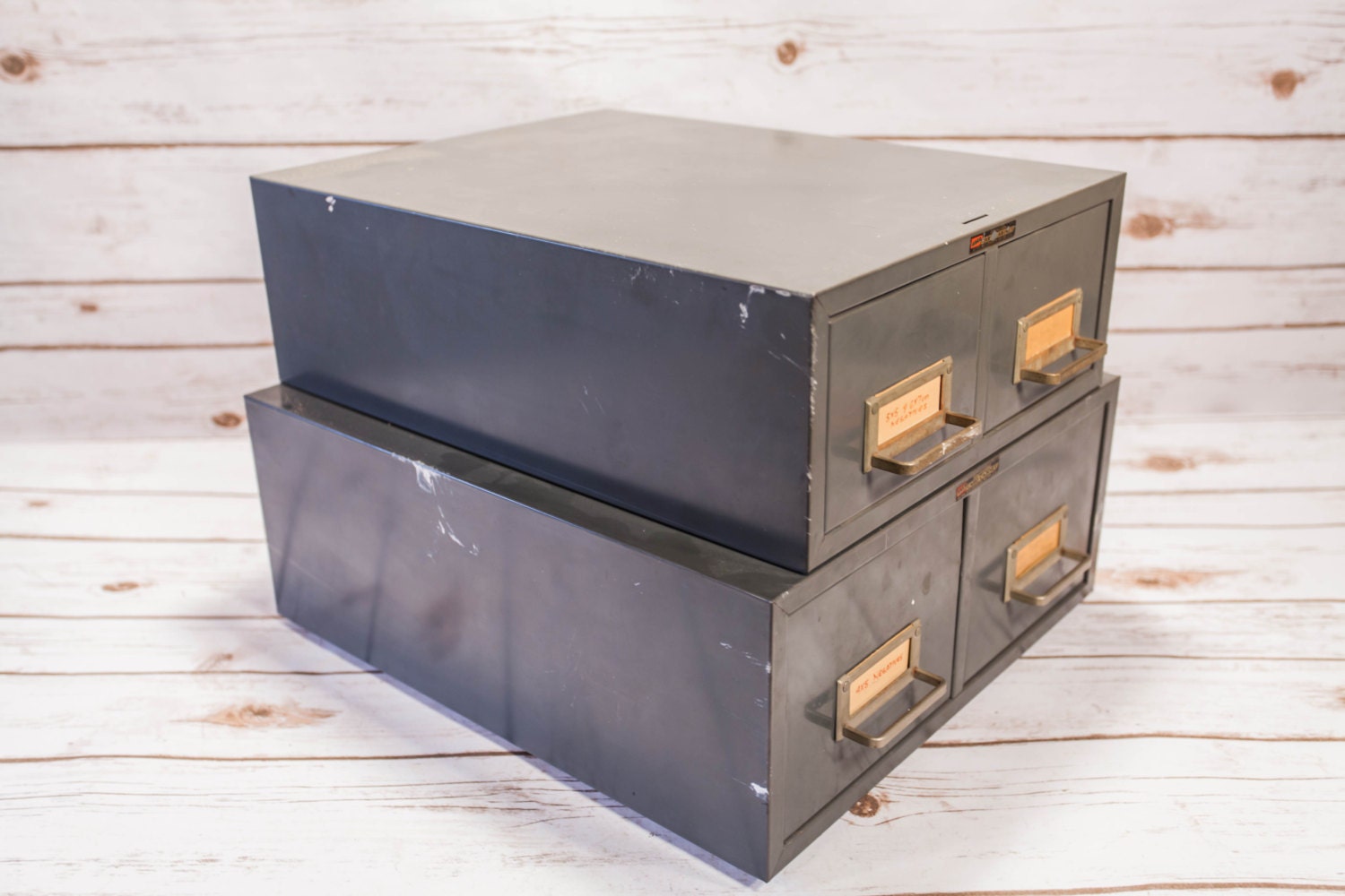 Vintage ASCO Art Steel Metal Drawer Index Card Cabinet Gray Industrial File Library Cabinet Box Two Tier Double Drawer