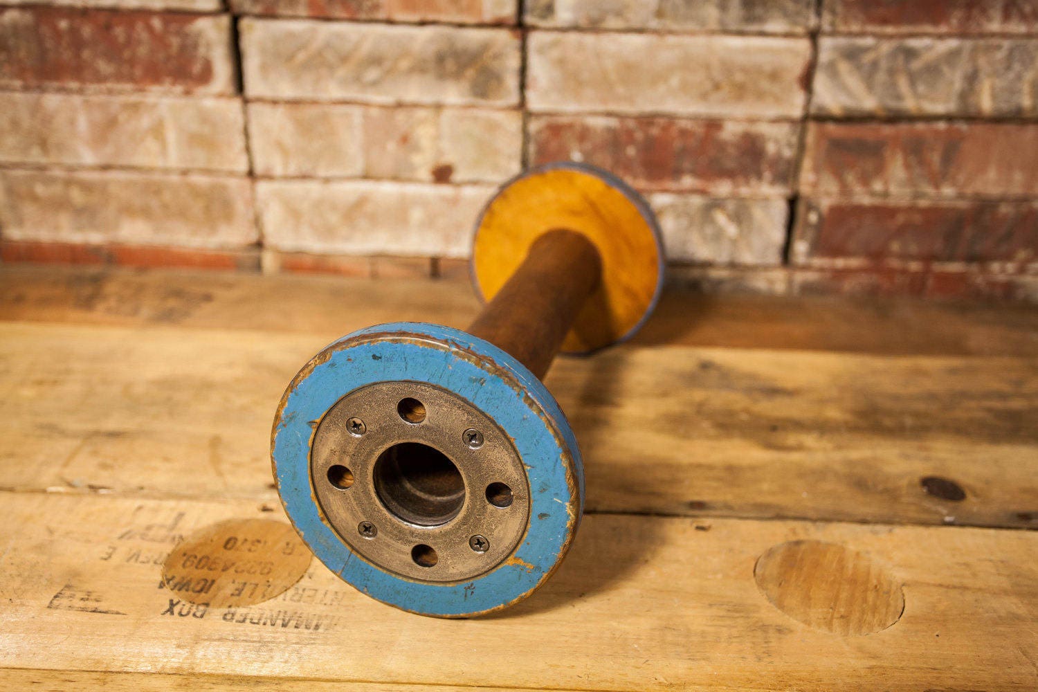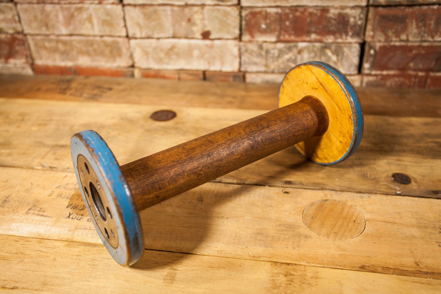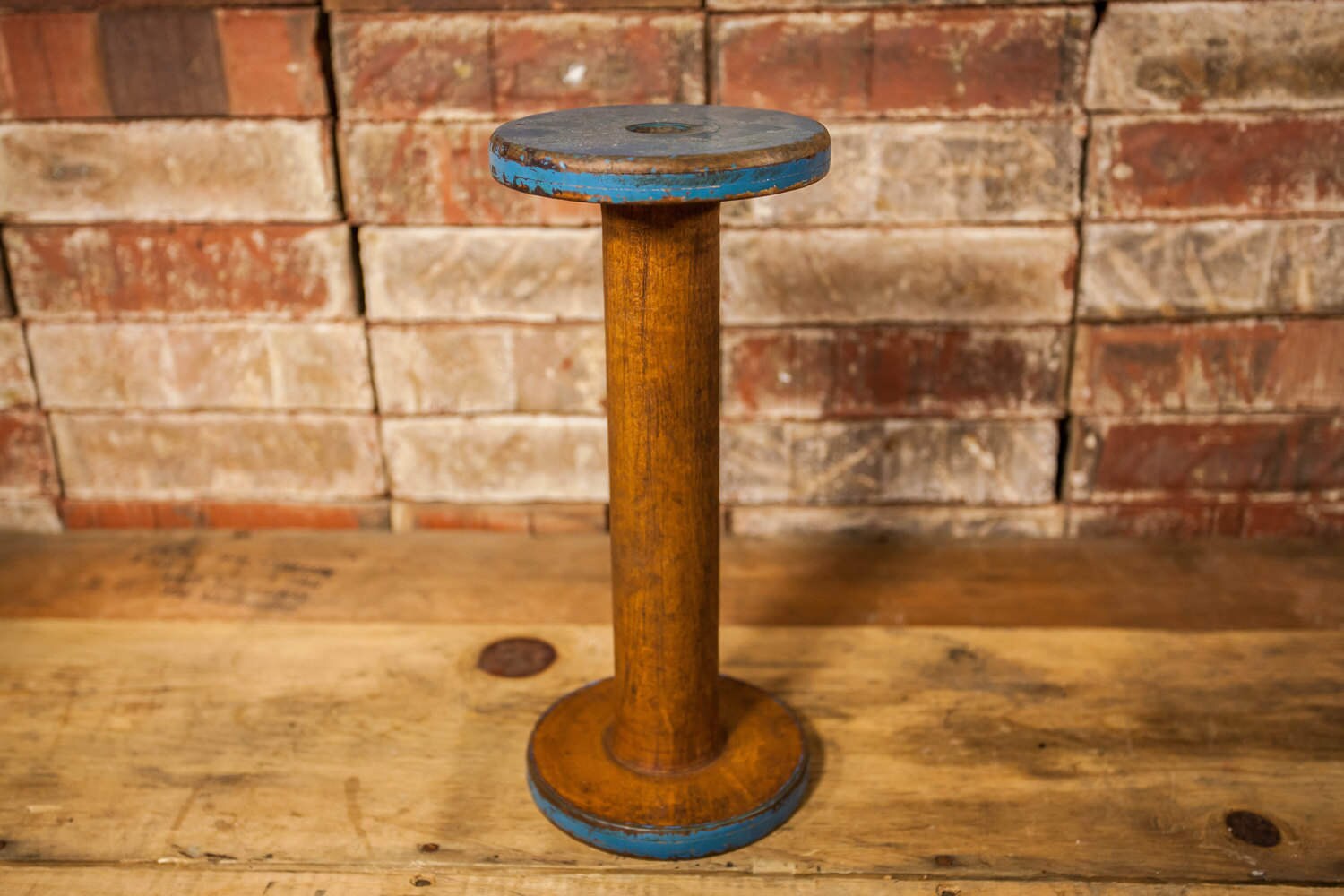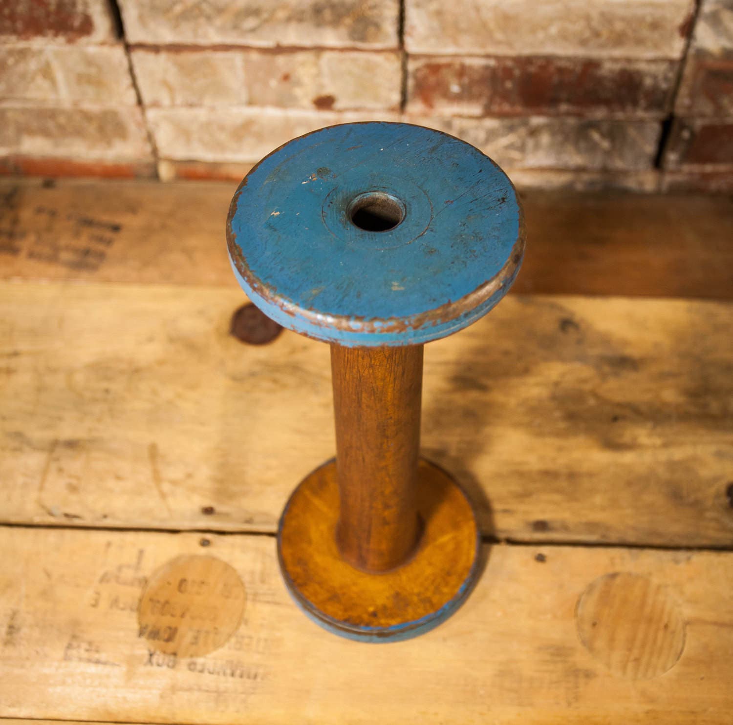 We love finding old bobbin spools when we are out picking. They make great display pieces and even can still make great gifts for that person who enjoys to sew. It is approx. 11 1/2 x 5 inches and does have some wear to it but the wood has an awesome aged look. The ends are painted blue and the paint is distressed. The one side has a metal plate which adds an industrial feel. All in all a great piece. Please check out the photos for a closer look and if you have any questions please let me know. Thanks!