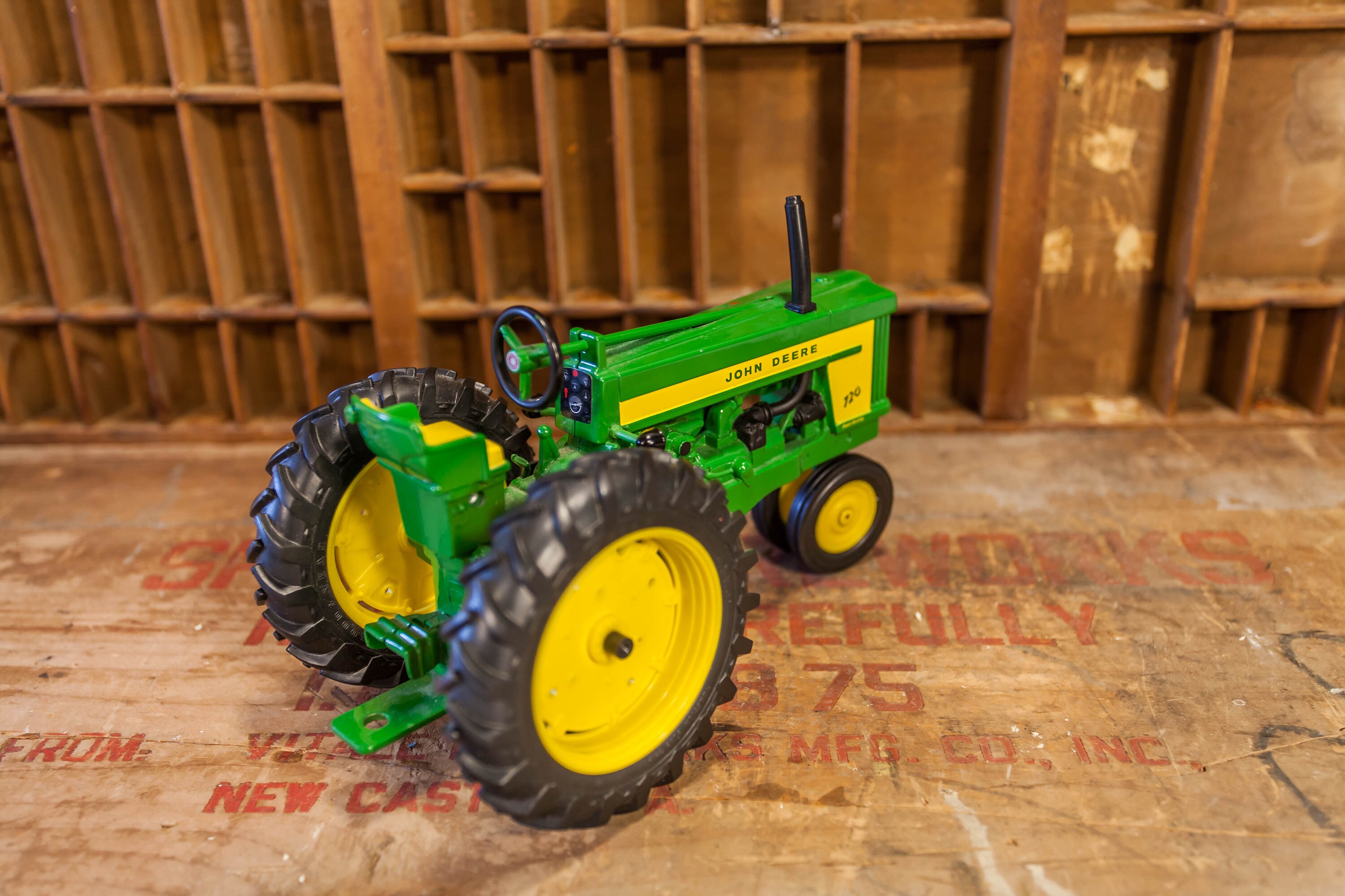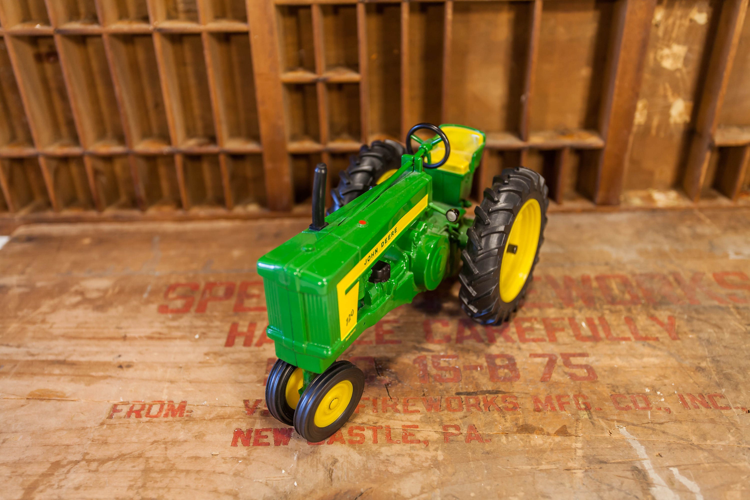 This is a John Deere 720 Tractor. It looks to be a 1/16 Scale Model and is in very nice shape. There is some dust and needs a good cleaning. A few normal scratches but still would make a great display piece in a nursery or kids room. It is approx. 8 1/2 x 4 1/2 x 4 1/2 inches. We picked up a few other tractors so make sure to check out the others as well. Please check out the photos for a closer look and if you have any questions please let me know. Thanks!