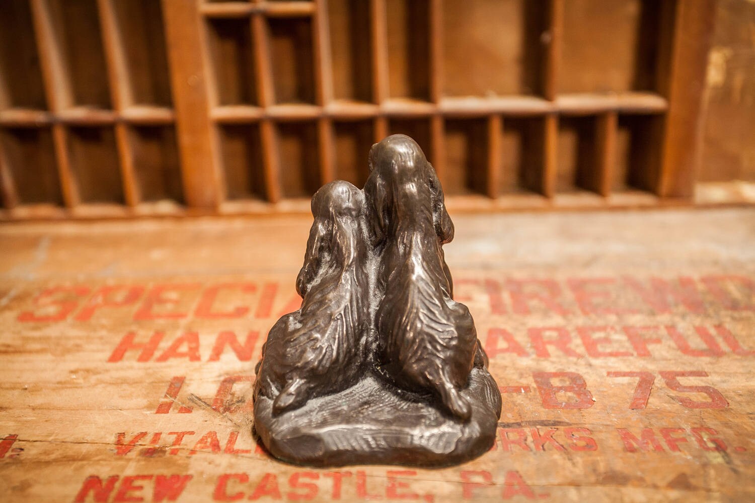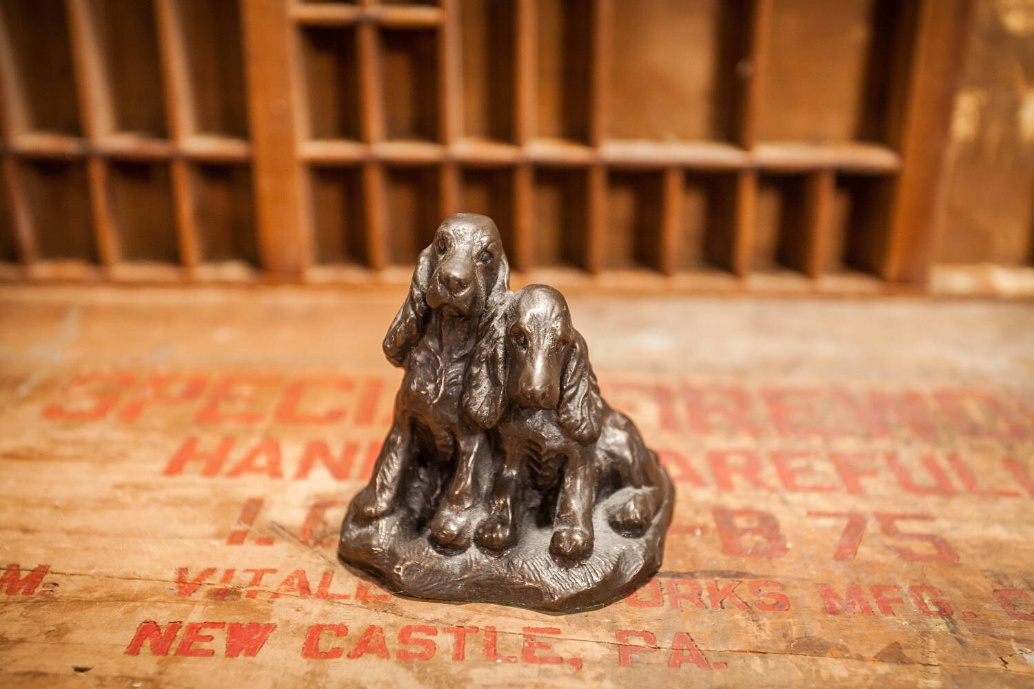 This would be a great gift for that springer spaniel owner. It is approx. 3 1/2 x 3 1/2 inches and it does have some wear but nothing major. It is believed to be a cold cast bronze and has an awesome look to it. There is some green felt on the bottom so it doesn't scratch your surfaces. All in all a great looking piece to add to your home decor. Please check out the photos for a closer look and if you have any questions please let me know. Thanks!