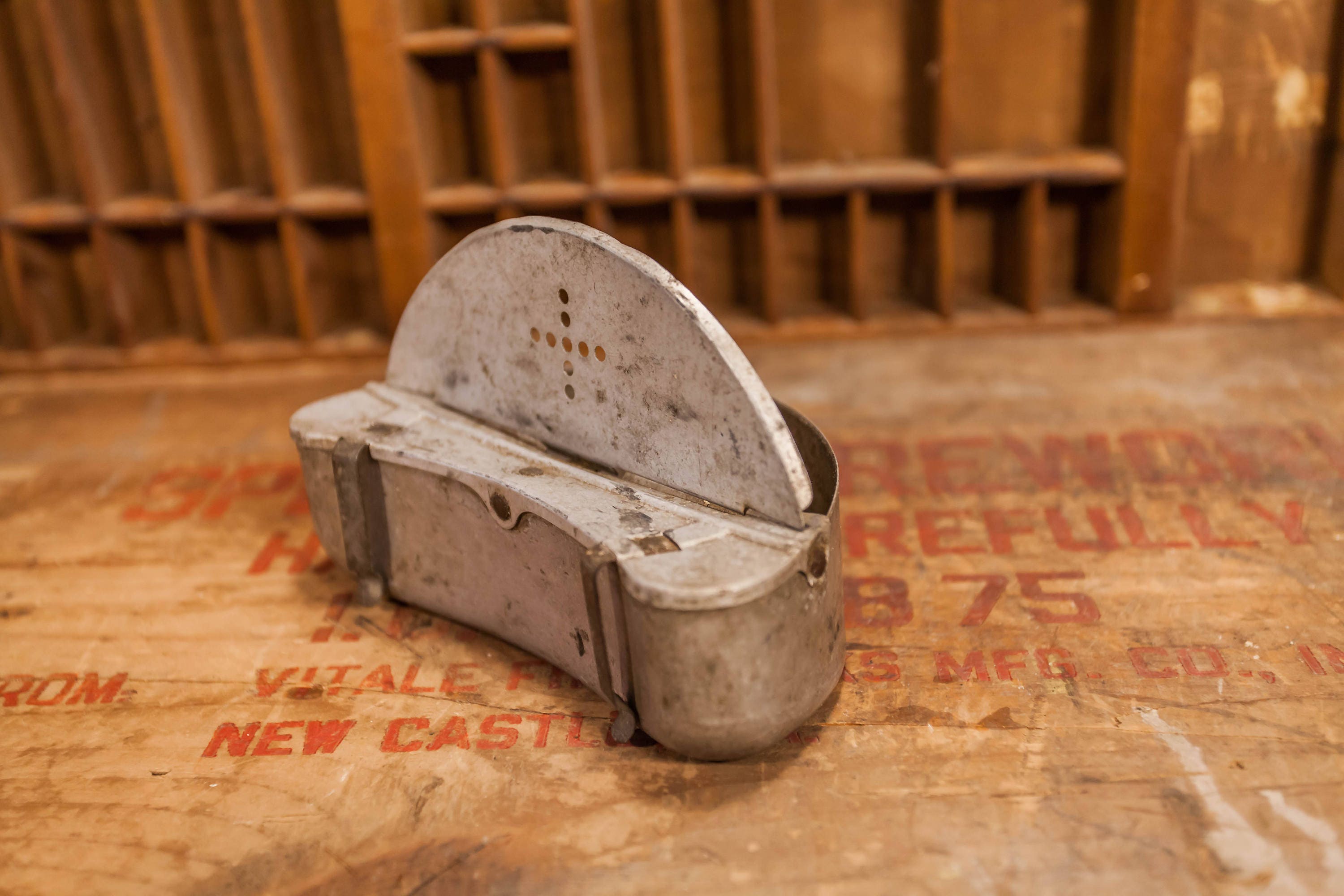 This is a nice vintage fishing bait box. The box is metal/tin and does have some wear. It does have some scratches and needs a good cleaning. There is some slight rust but if you are using it for bait its ready to go. The lid opens and closes. It is approx. 6 x 3 1/2 x 2 inches. All in all great vintage fishing tackle that would make a great gift for that fishermen in the family or a great display piece for a man cave. Please check out the photos for a closer look and if you have any questions please let me know. Thanks!