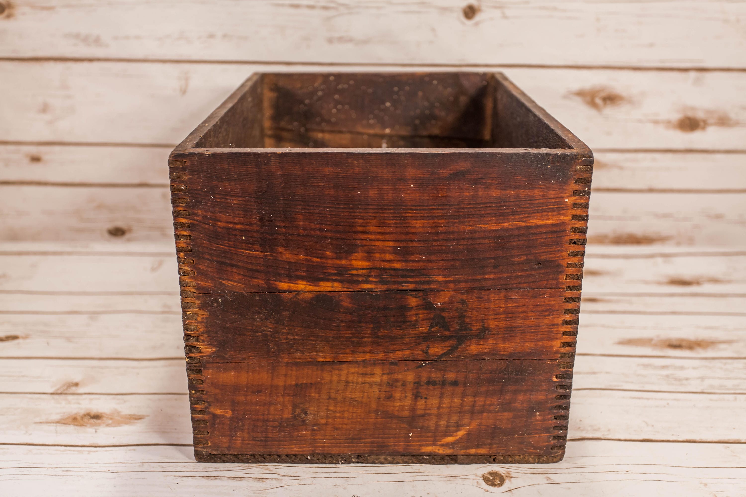 Take a look at this awesome explosives crate. It is a High Explosives Dangerous Crate I.C.C. 14 Union Made. The crate is wooden and is dovetailed. It is very solid and its approx. 17 1/2 x 12 x 10 1/2 inches. It does have some slight wear but all in all an awesome display piece. Please check out the photos for a closer look and if you have any questions please let me know. Thanks!