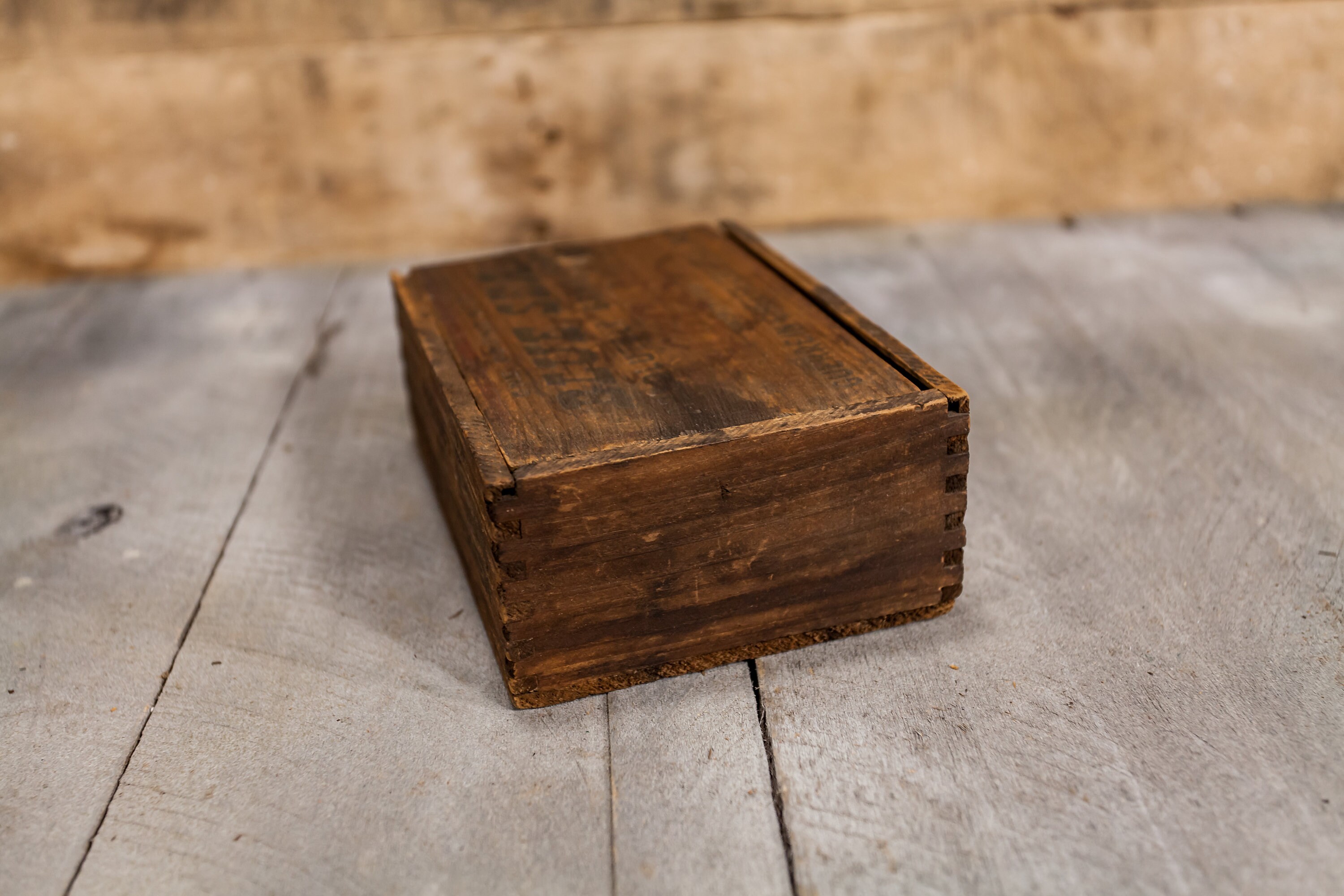 Check out this Blue Sea Boneless Wooden Cod Box. They make great storage and decor for fishing cabins. It is approx. 6 x 4 1/4 x 2 1/4 inches. It does have some wear, scratches and the graphic is slightly faded. It is made by the Guerrein Cheese Co. in Erie, PA. Please check out the photos for a closer look and if you have any questions please let me know. Thanks!