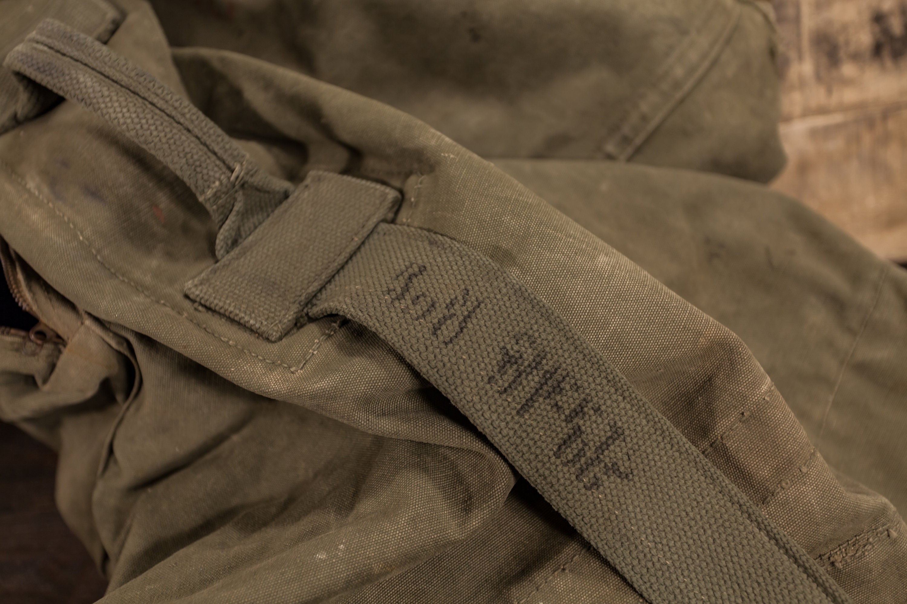Check out this US Military duffle bag. It is army green and has faded black writing. It does have a lot of wear to it, stains, holes and also he zipper is broken. We couldn't see it just get thrown out. These make great repurposed items such as pillows. It could use a good cleaning and it is approx. 36 x 23 inches. We picked up two different duffle bags so check out the other option as well. Please check out the photos for a closer look and if you have any questions please let me know. Thanks!