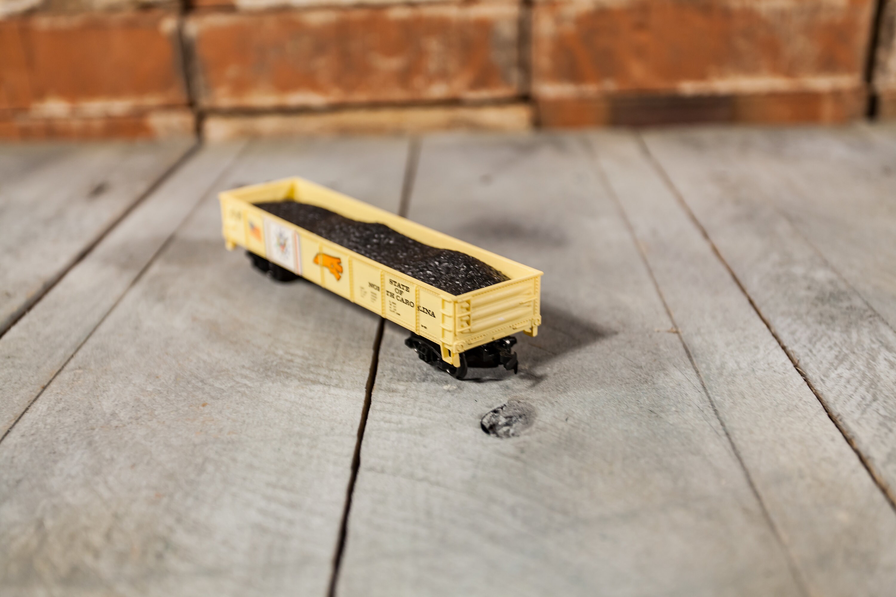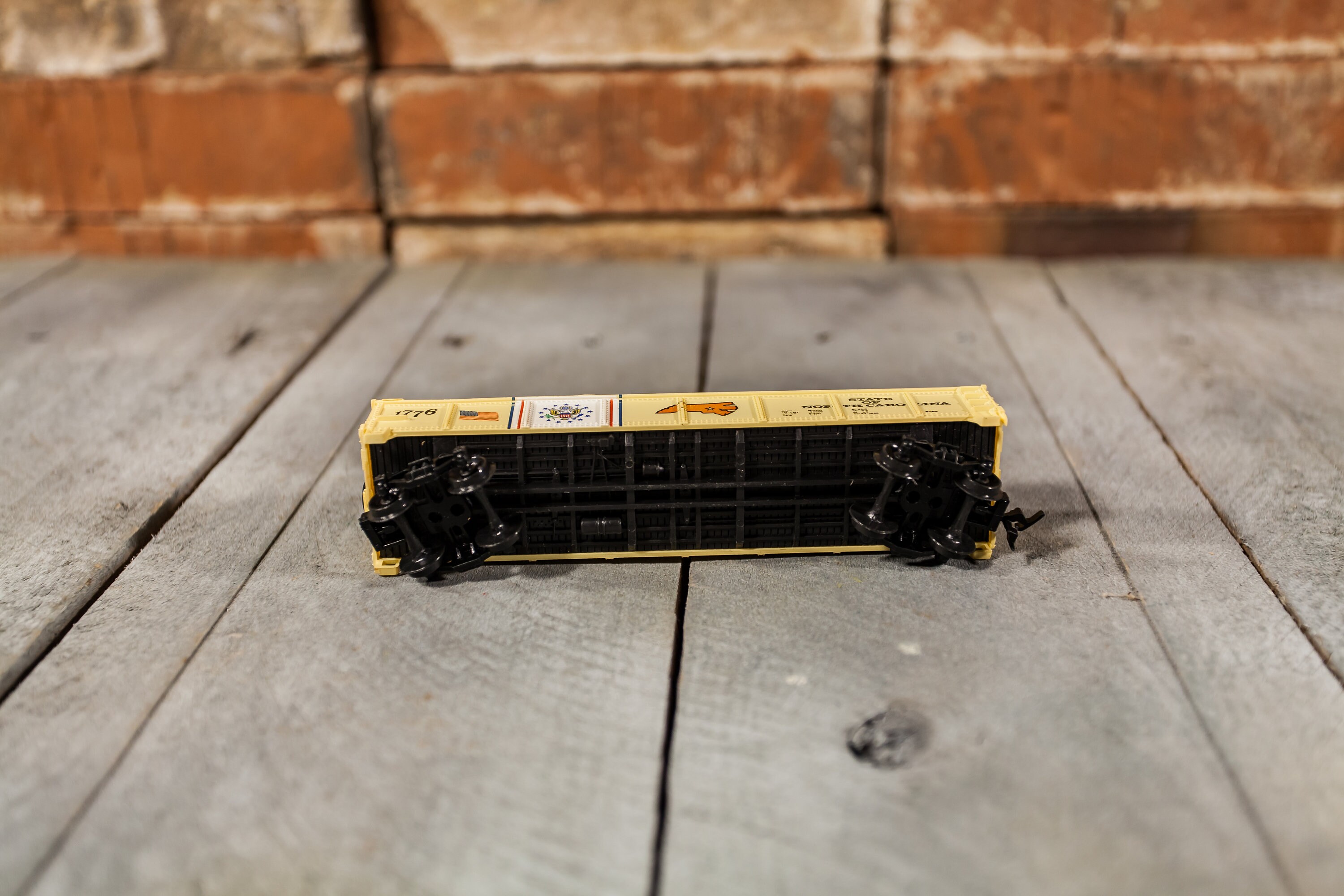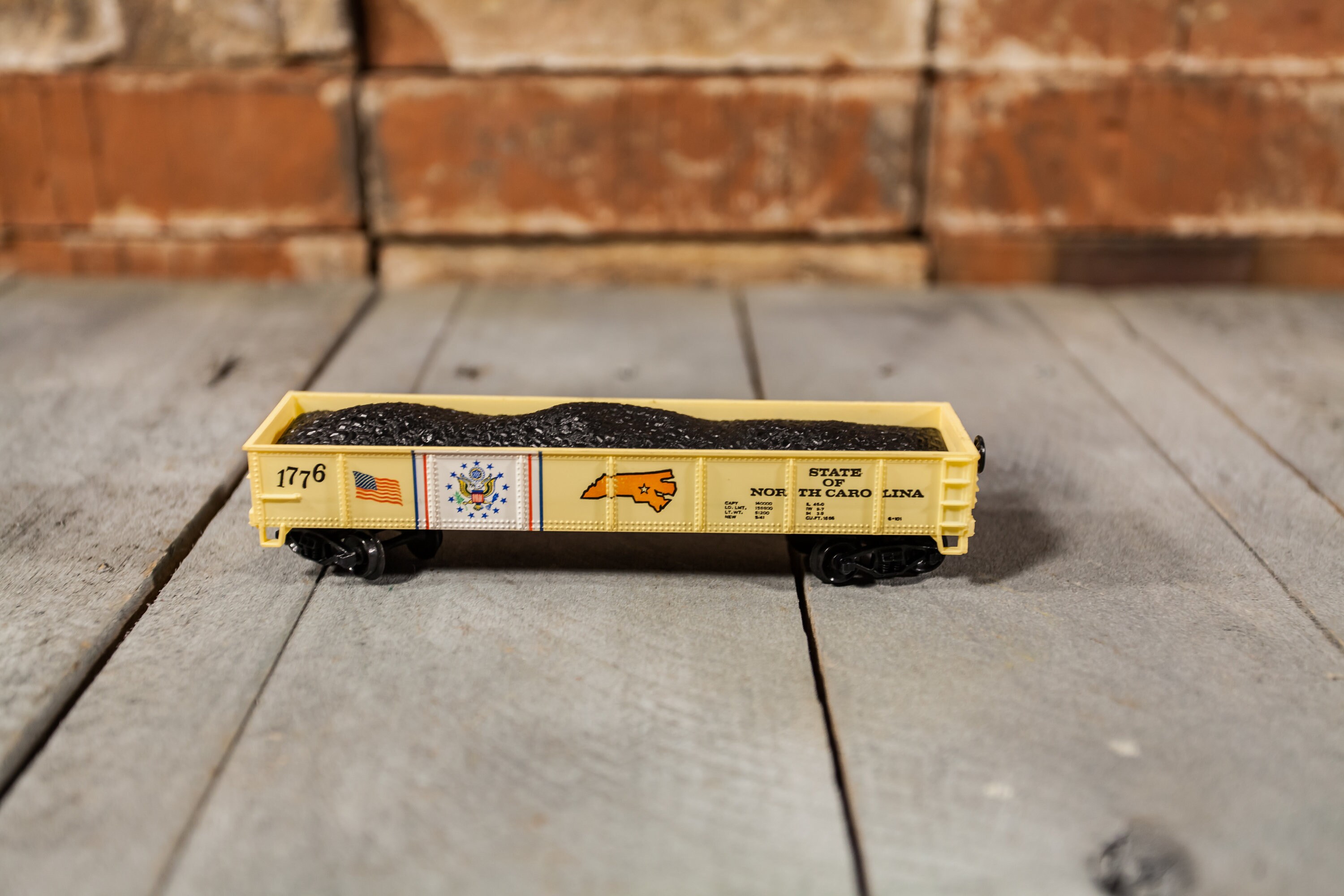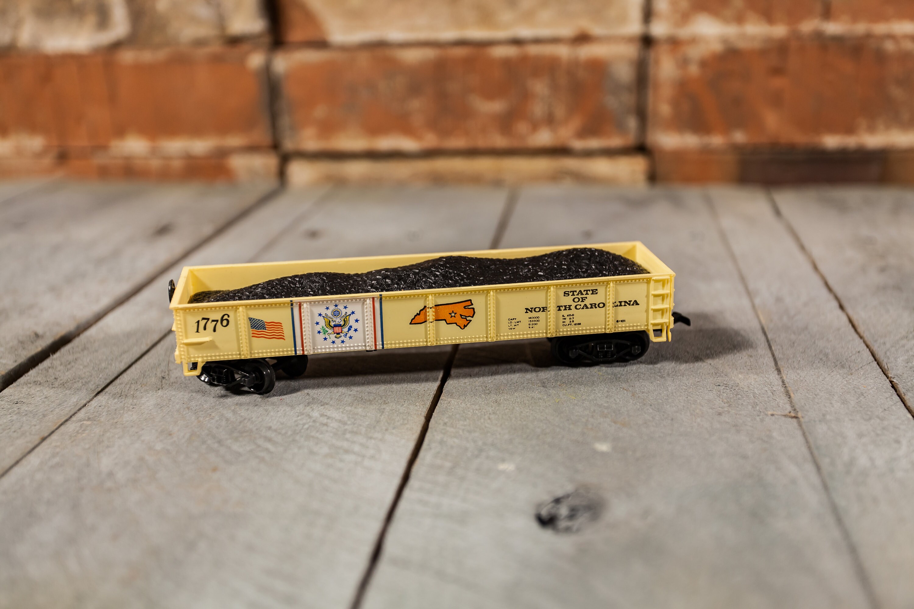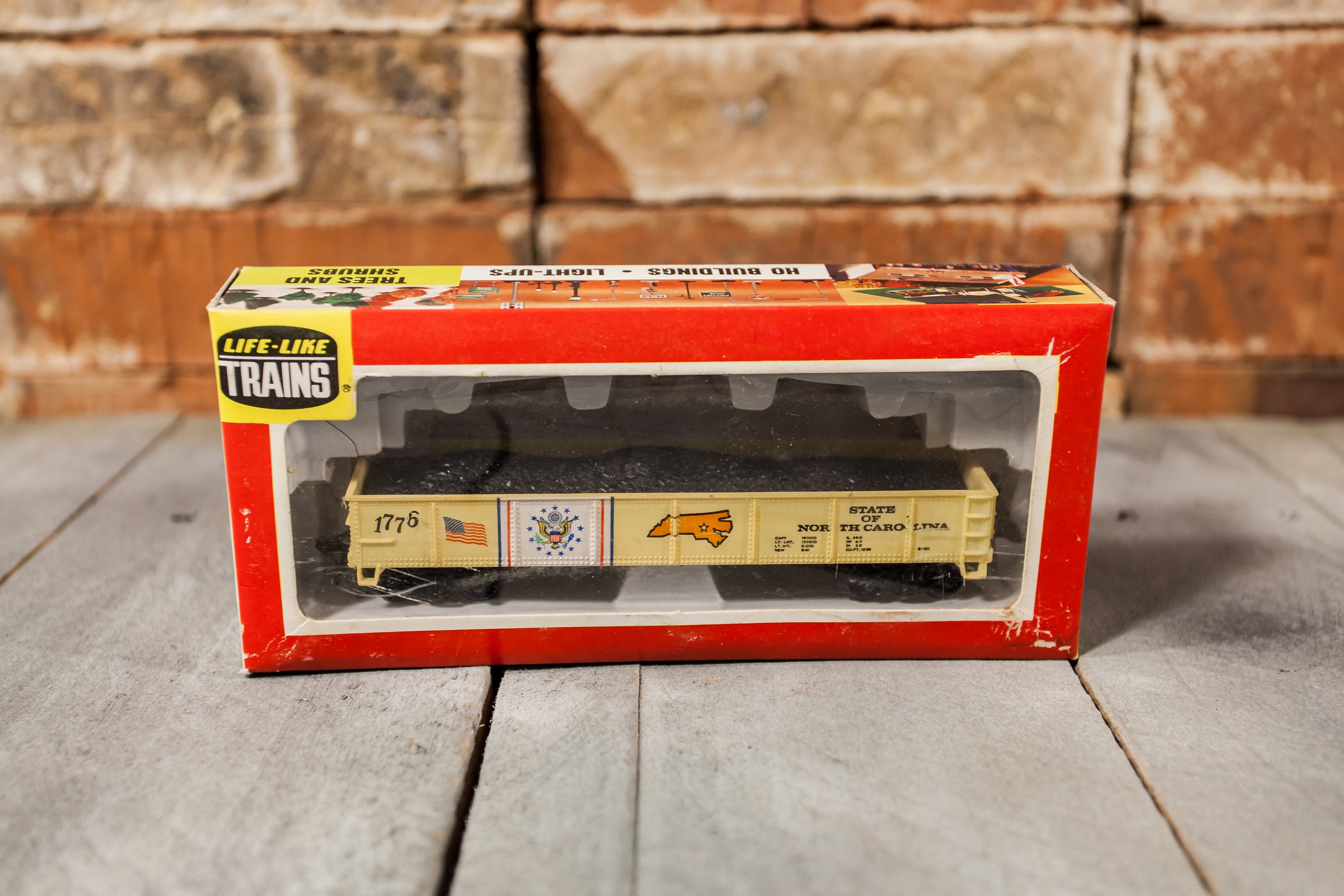 Take a look at this cool toy train. We picked up a bunch of these HO state train cars. This is a State of North Carolina 1776 HO Scale Gondola Car. It is approx. 6 x 1 1/2 x 1 1/2 inches. It does look to have ever been used but we are not positive. It comes with the original box and the box is banged up, some scratches dust and some wear but the train itself looks great. These make great display pieces. Please check out the photos for a closer look and if you have any questions please let me know. Thanks!