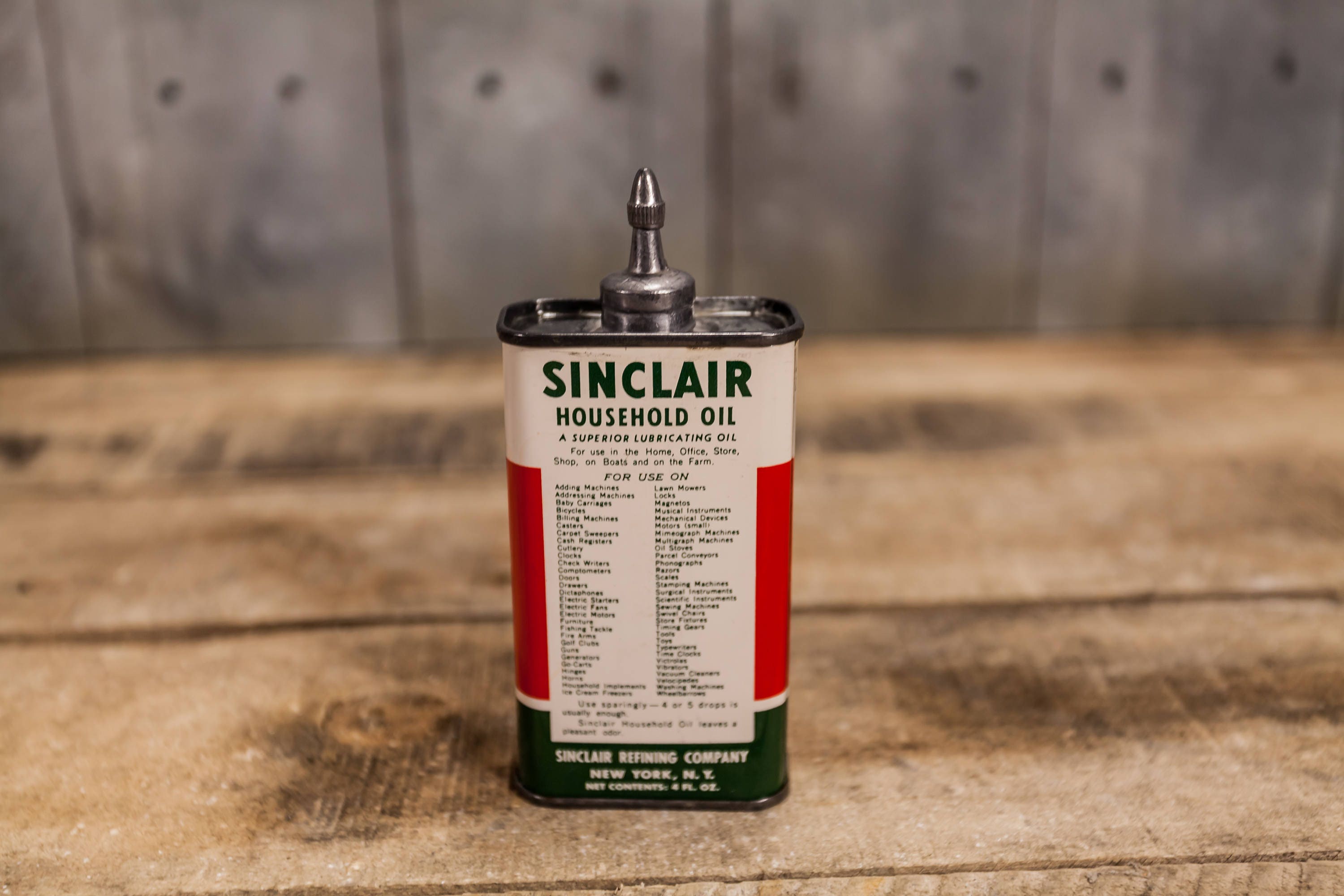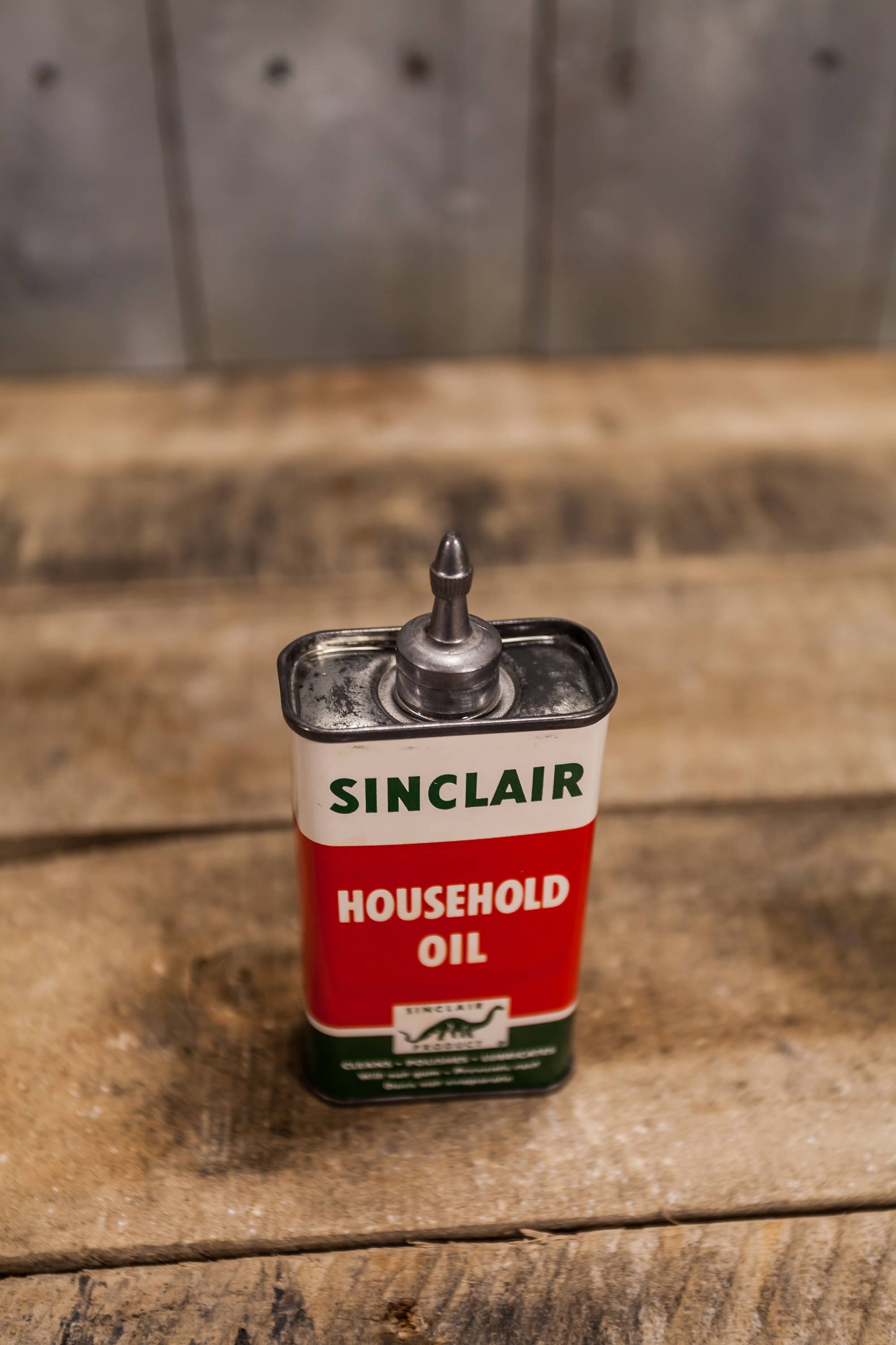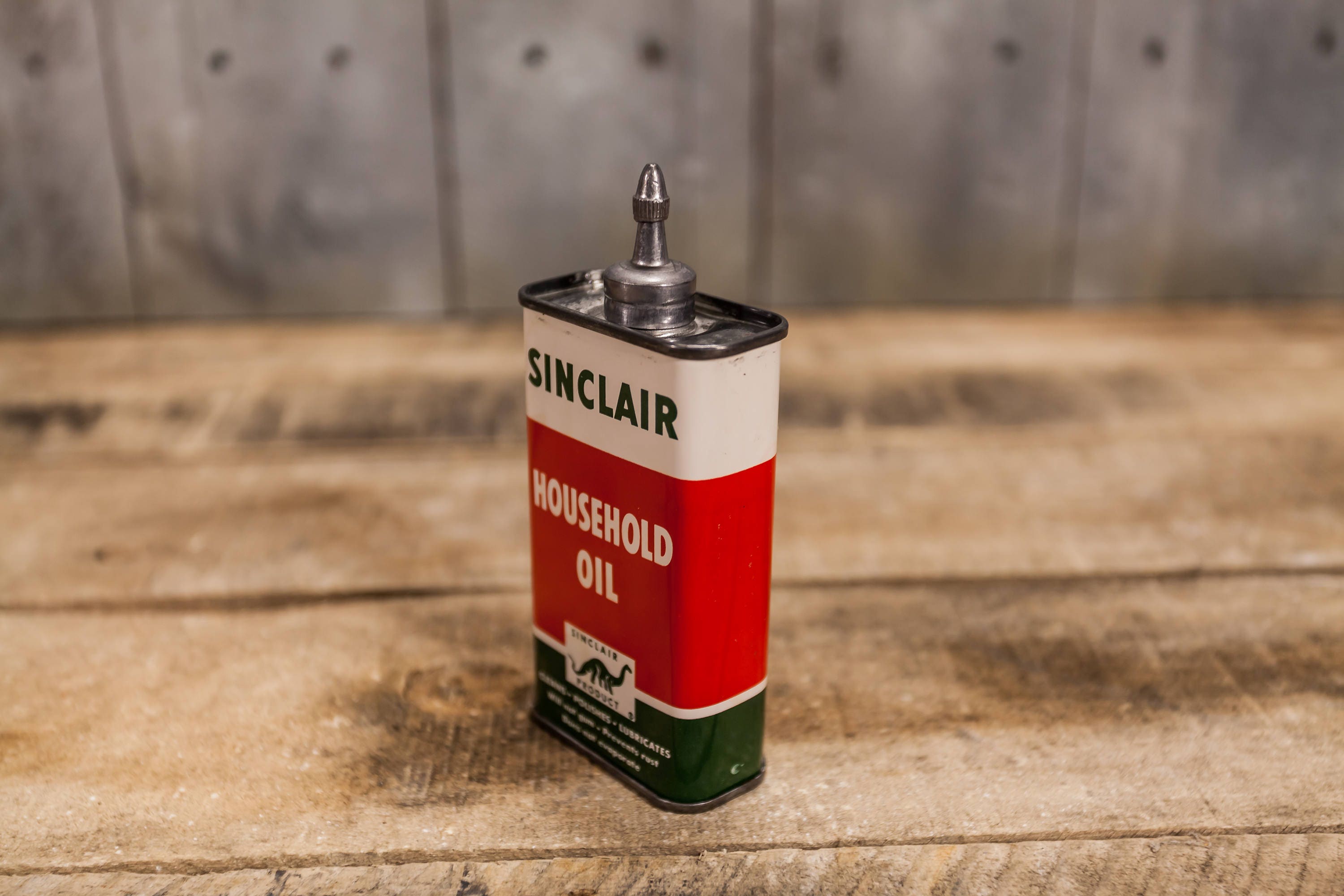 Take a look at this awesome 4oz Handy Oiler. This is a must have in any collection. It feels like its full and it features a lead top. It is a Sinclair Household Oil can. It is approx. 5 x 2 x 1 inches and is in very nice shape. The can has a little wear but almost looks brand new. The colors still pop and look great. This would make a great display piece or addition to any handy oiler collection. Please check out the photos for a closer look and if you have any questions please let me know. Thanks!