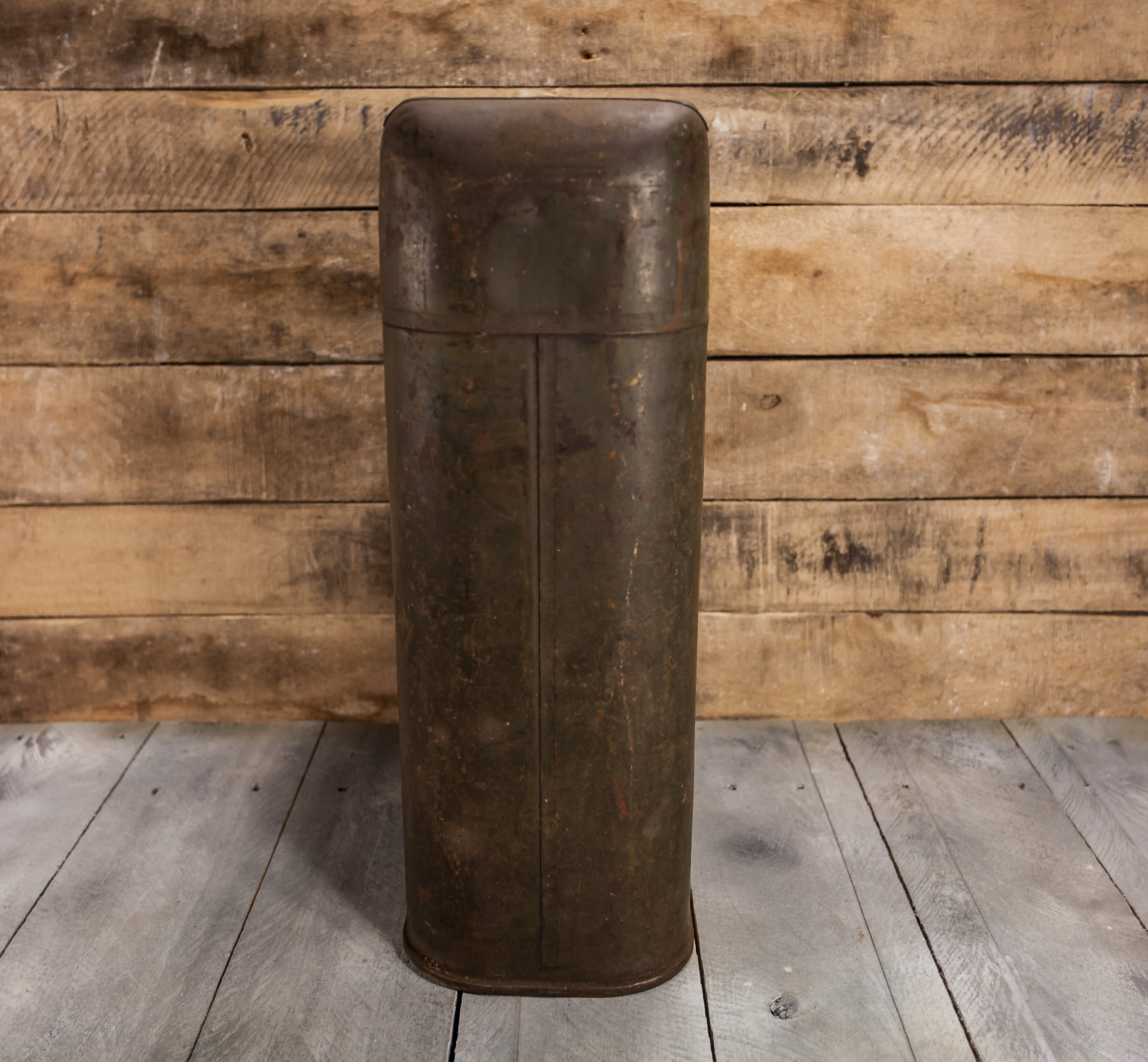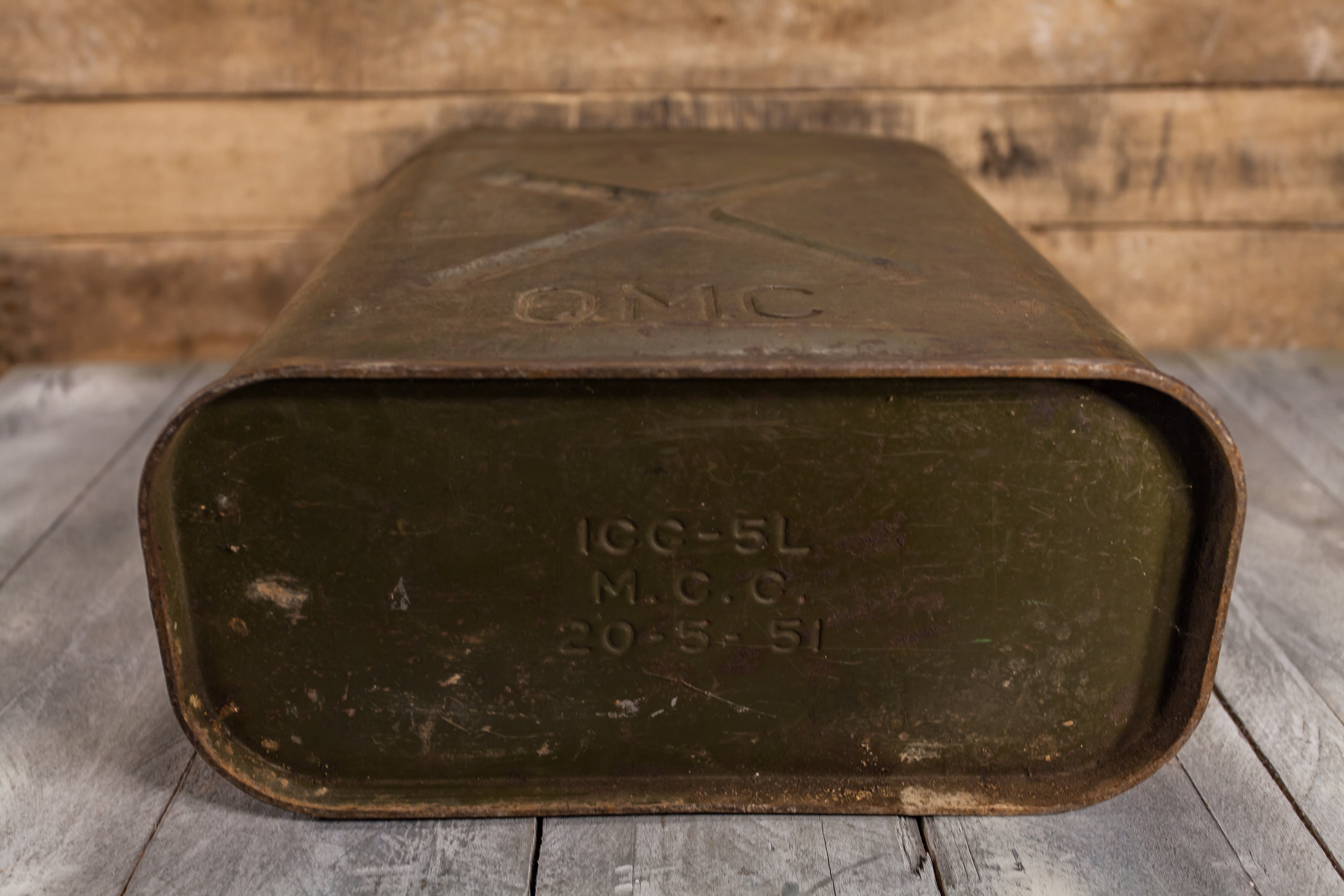 Take a look at this awesome WWII Jerry Can. This Military Metal Gas Can would make an awesome display piece or even a great addition to an old jeep to showcase at car shows. We picked up two of these so make sure you check out the other one as well. This is army green and does have some wear. There is some dents, rust but still looks awesome. It is approx. 18 1/2 x 13 x 6 inches. Please check out the photos for a closer look and if you have any questions please let me know. Thanks!
