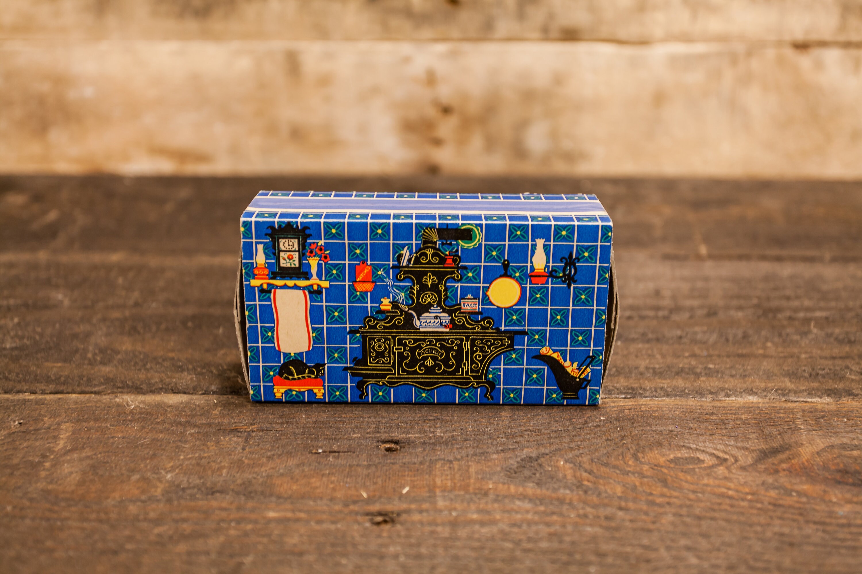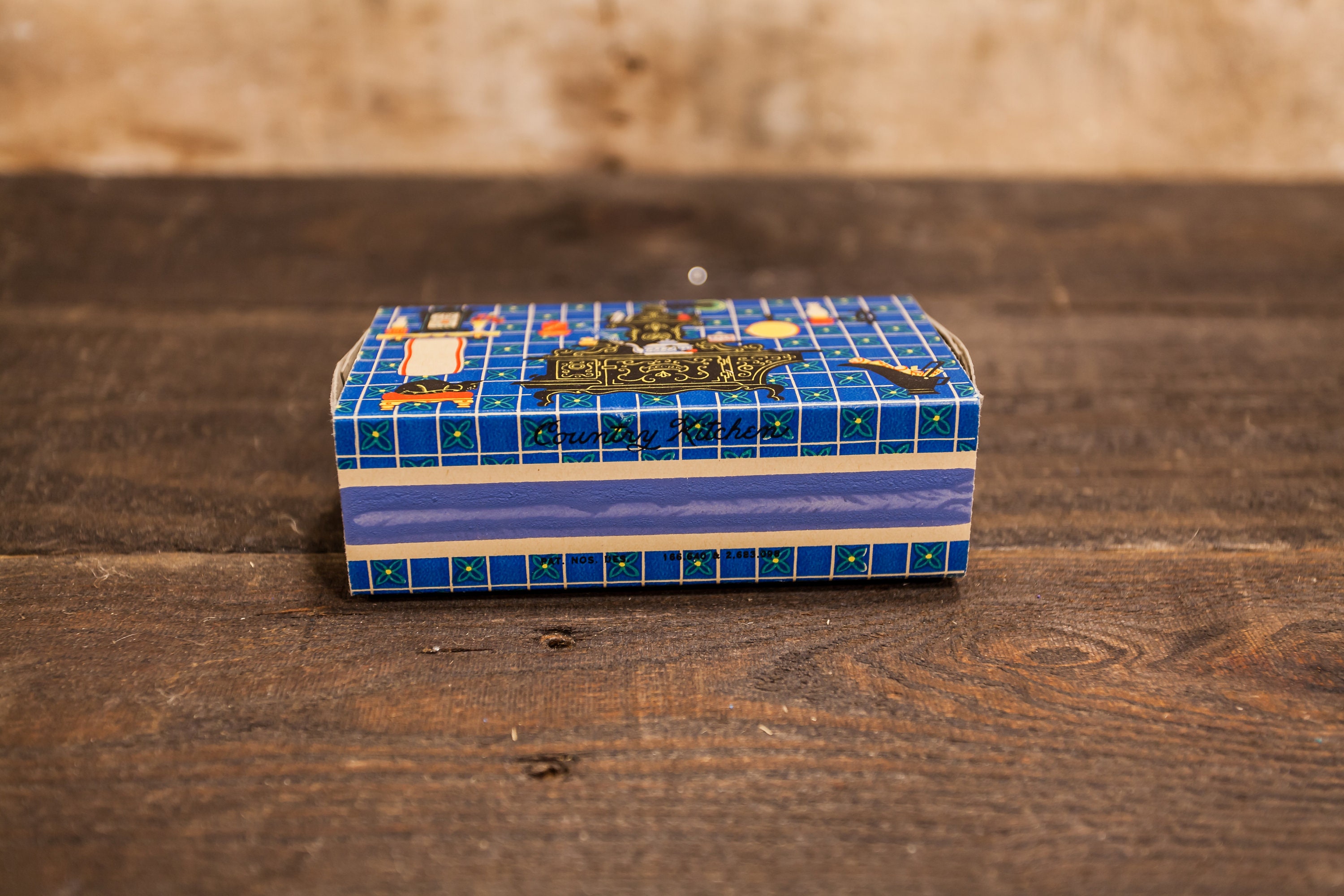 Take a look at this awesome advertising piece. It is an Ohio Blue Tip Match box from 1955 and it looks to never have been used. It looks completely full of matches. The graphic still pops and this scene is called "Country Kitchen". It is approx. 4 3/4 x 2 3/4 x 1 1/2 inches. The box has little to no wear. These make great display pieces in a kitchen. The colors still pop on it. All in all a great looking piece. Please check out the photos for a closer look and if you have any questions please let me know. Thanks!