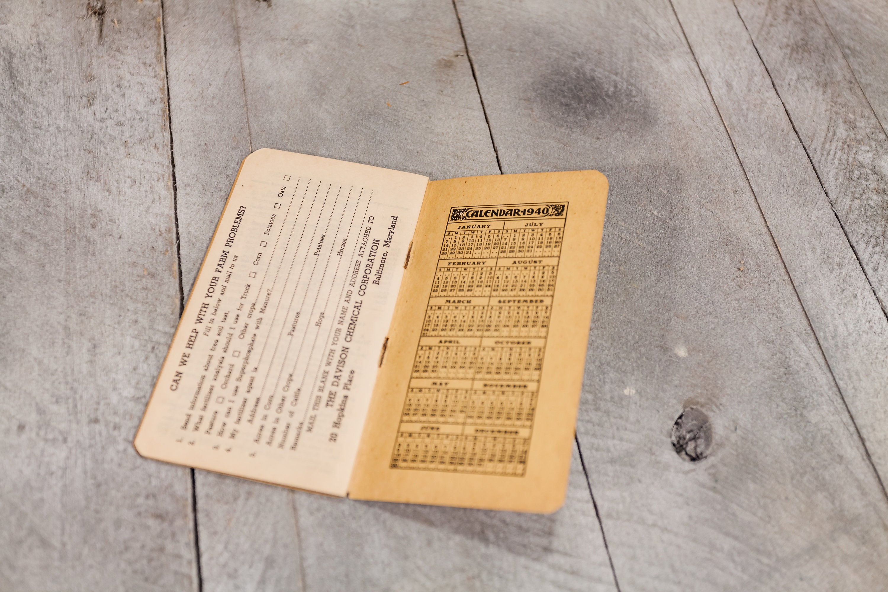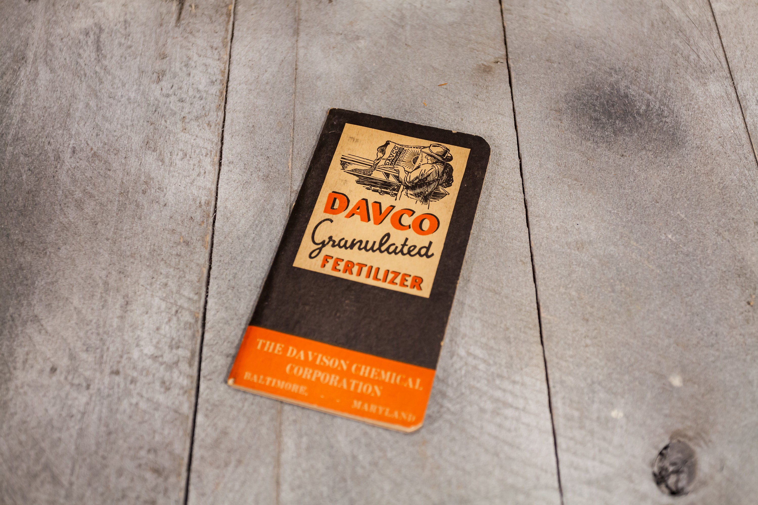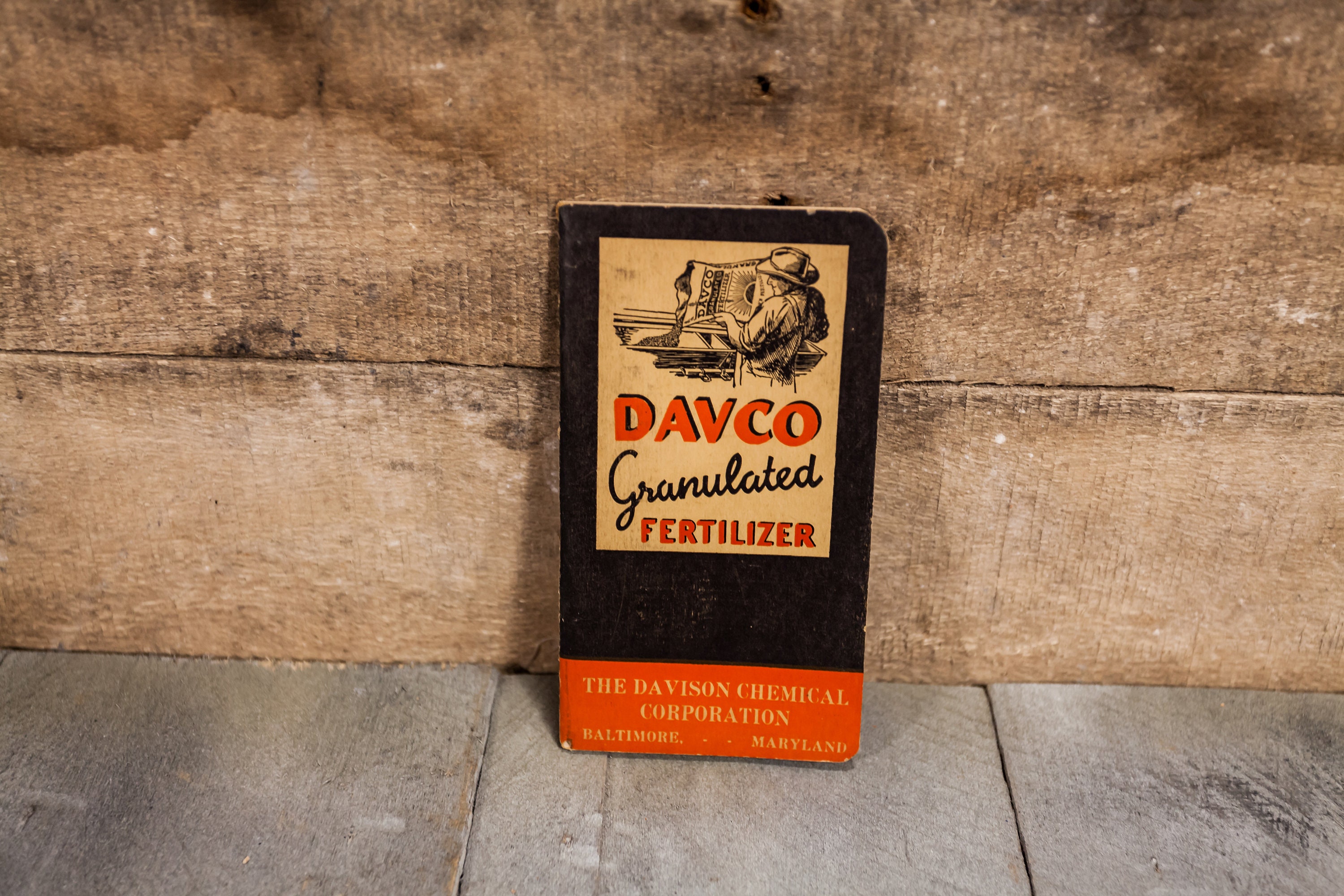 Check out this awesome piece of advertising from 1940. This is a Davco Granulated Fertilizer Log Book made by the Davison Chemical Corp. in Baltimore, MD. It does have some wear but it is still intact. The colors still pop on it. These look great just laying on a shelf or in a frame. It is approx. 5 1/2 x 3 inches. Please check out the photos for a closer look and if you have any questions please let me know. Thanks!