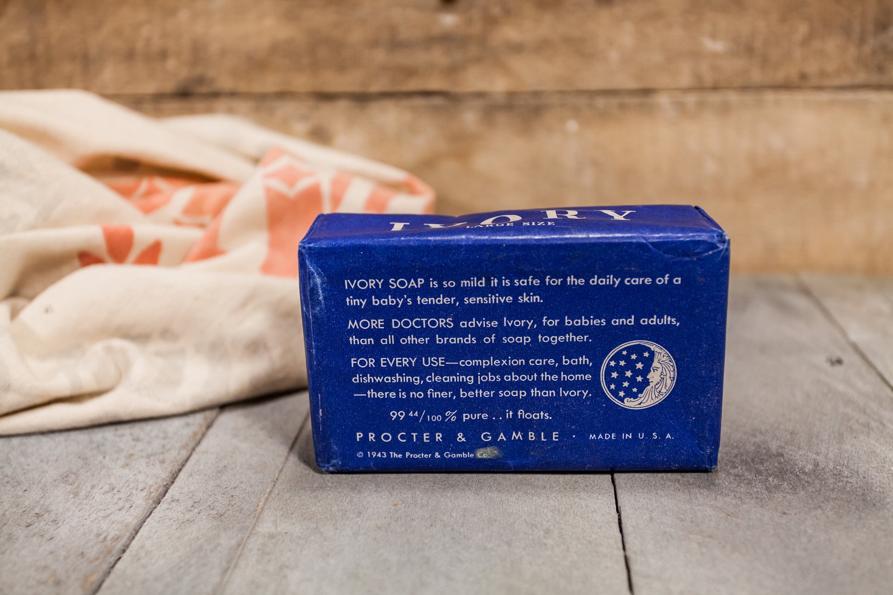 We love finding old advertising pieces. They make awesome display pieces. This would look absolutely awesome in a laundry room or bathroom just sitting on the shelf. The simple vintage graphic still pops and is bright. This is an Ivory Soap Large Size bar. We picked up about 10 of these from an auction. They all have some wear but for their age its amazing how well they lasted. It is approx. 5 x 3 x 1 1/2 inches. As always when we have multiple of the same item the first buyer will receive the best quality one and so on. Please check out the photos for a closer look and if you have any questions please let me know. Thanks!