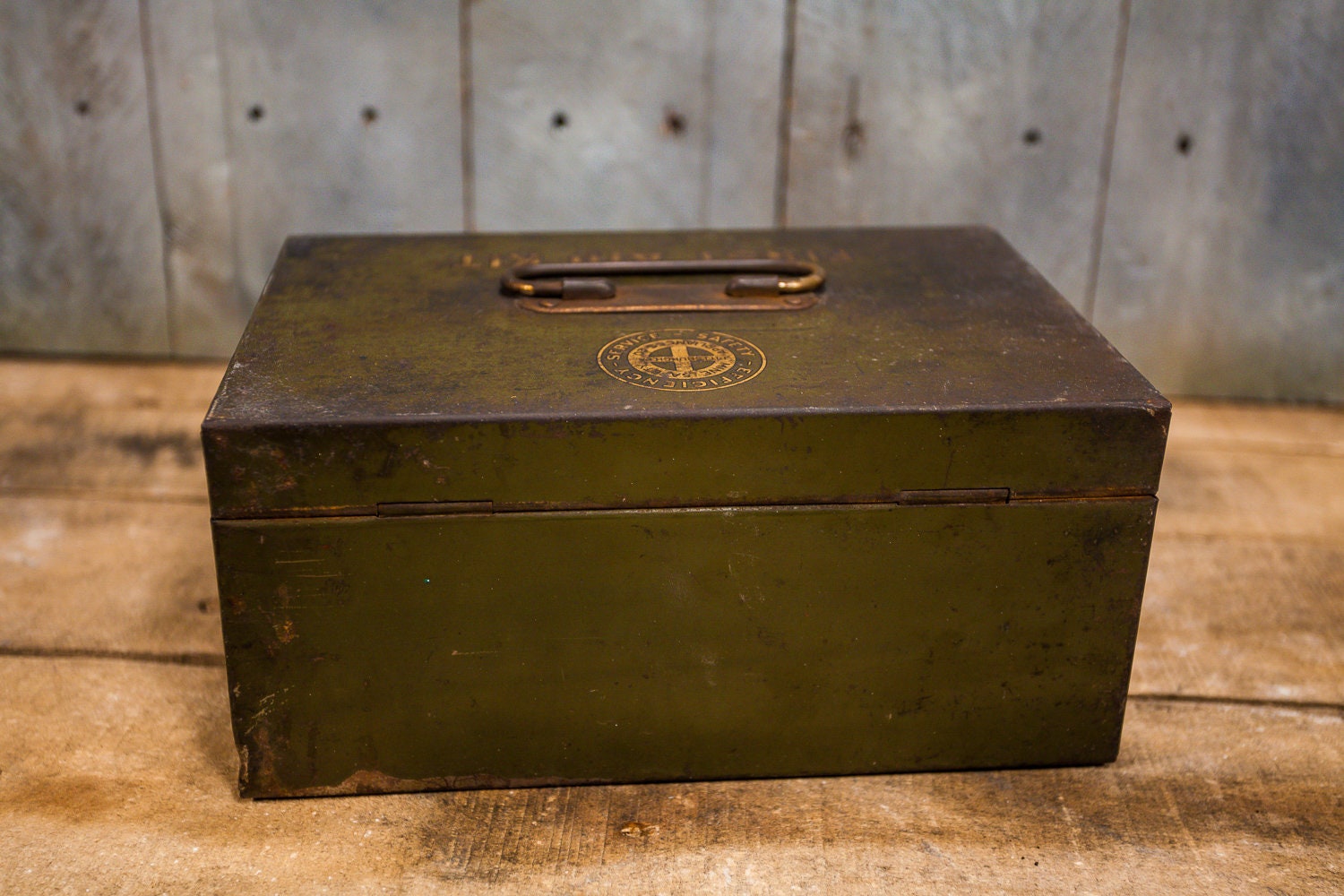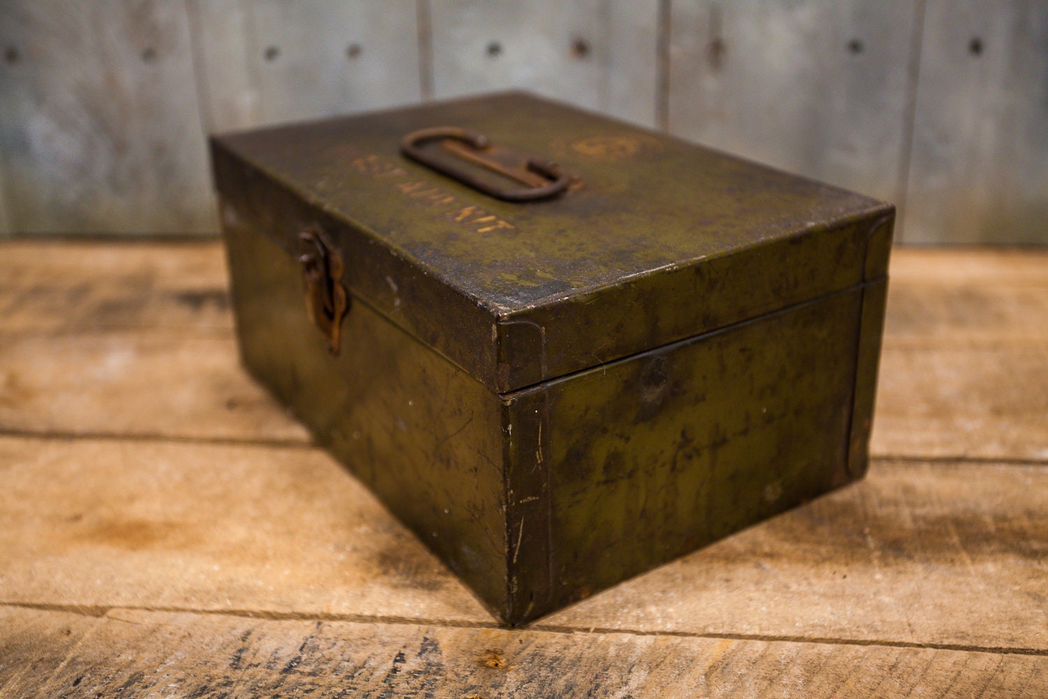 Check out this awesome first aid kit. This is a Mining First Aid Kit made by Mine Safety Appliances Co. in Pittsburgh, PA. The box is green with gold writing and it has such a great vintage look. It is approx. 9 1/2 x 6 1/4 x 4 1/4 inches. The box does have some wear, scratches, rust and a few paint spots. The box still latches and closes nicely. All in all an awesome display piece and collectable for any mining collector. Please check out the photos for a closer look and if you have any questions please let me know. Thanks!